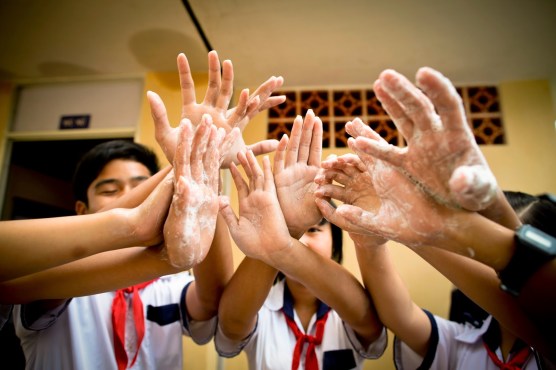 | Các giảng viên đang hướng dẫn cộng đồng cách rửa tay bằng nước sạch và xà phòng trong buổi kích hoạt. Ảnh: UNICEF Việt Nam\2014\Trương Việt Hùng |