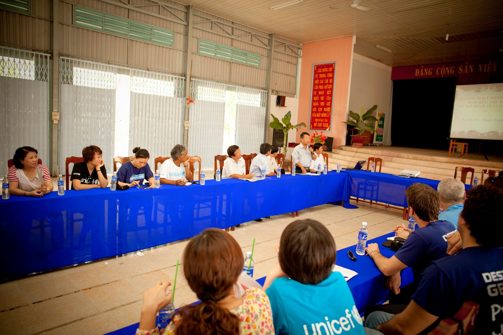| Đoàn gặp gỡ với lãnh đạo xã Thôi Sơn trước khi đi thăm các hộ gia đình trong xã. Ảnh: UNICEF Việt Nam\2014\Trương Việt Hùng |