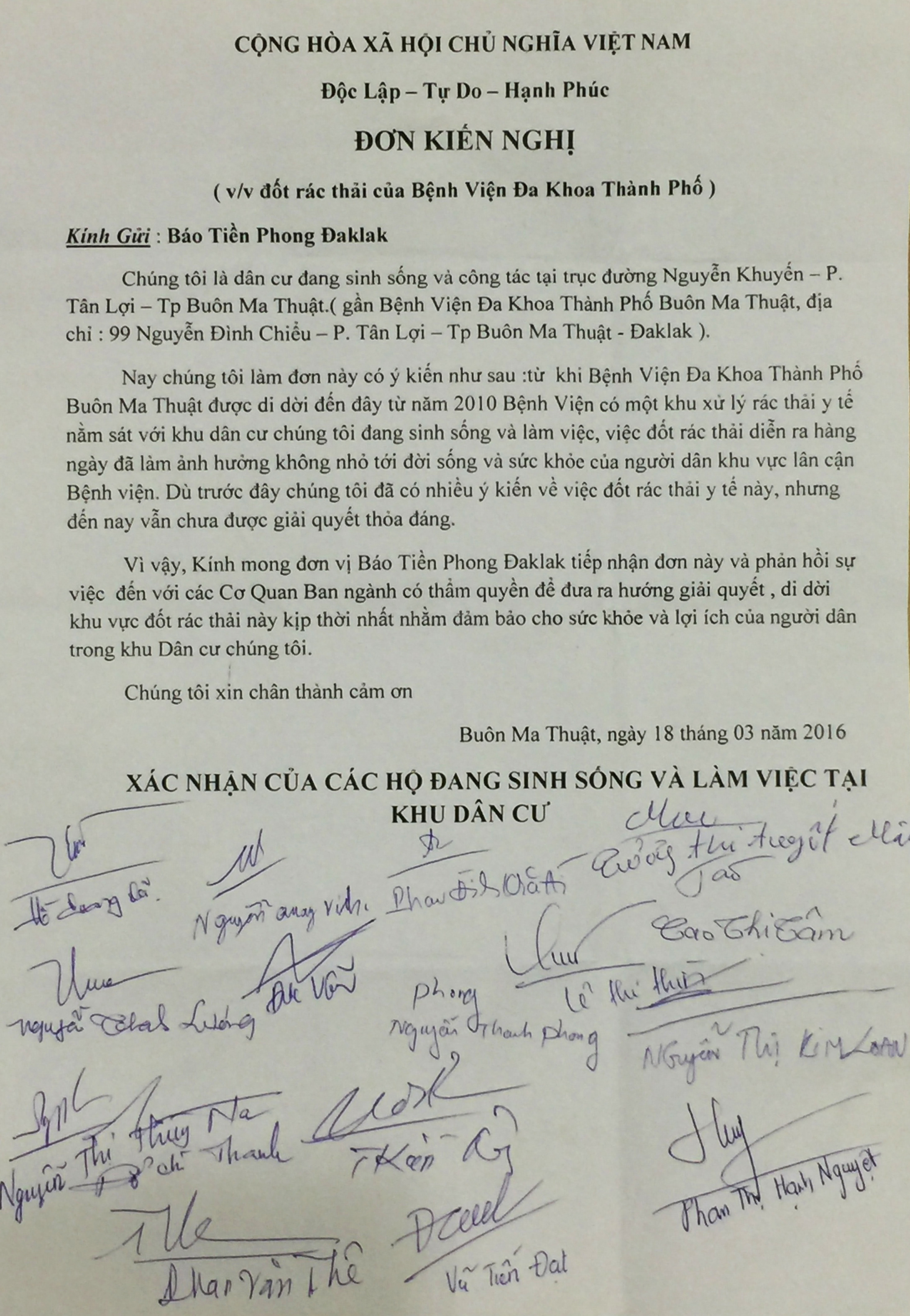 Đơn kiến nghị của dân chúng bị ô nhiễm vì máy hấp rác hỏng