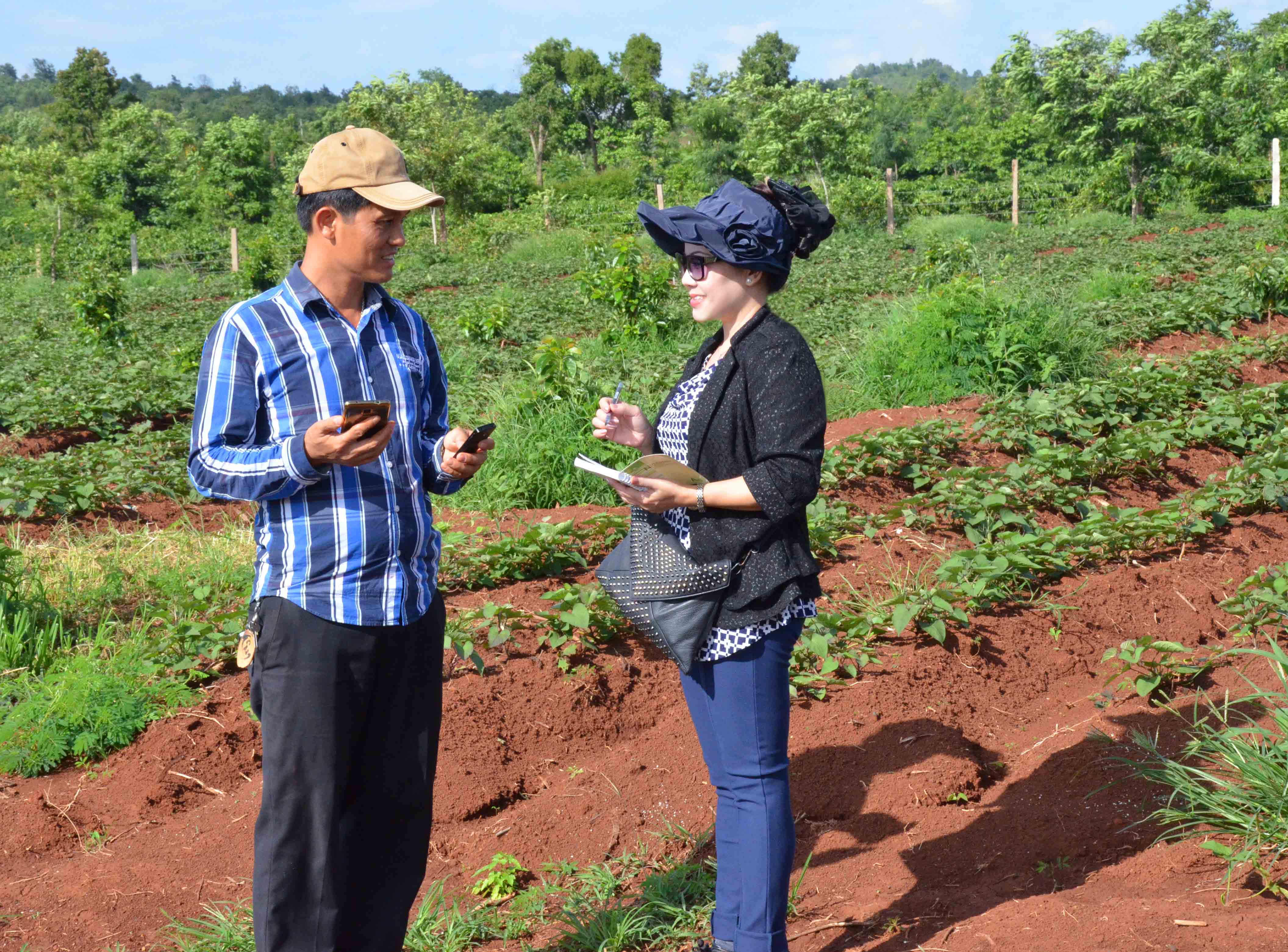 Anh Mười Bơ cuốc cỏ làm mẫu cho nhân công