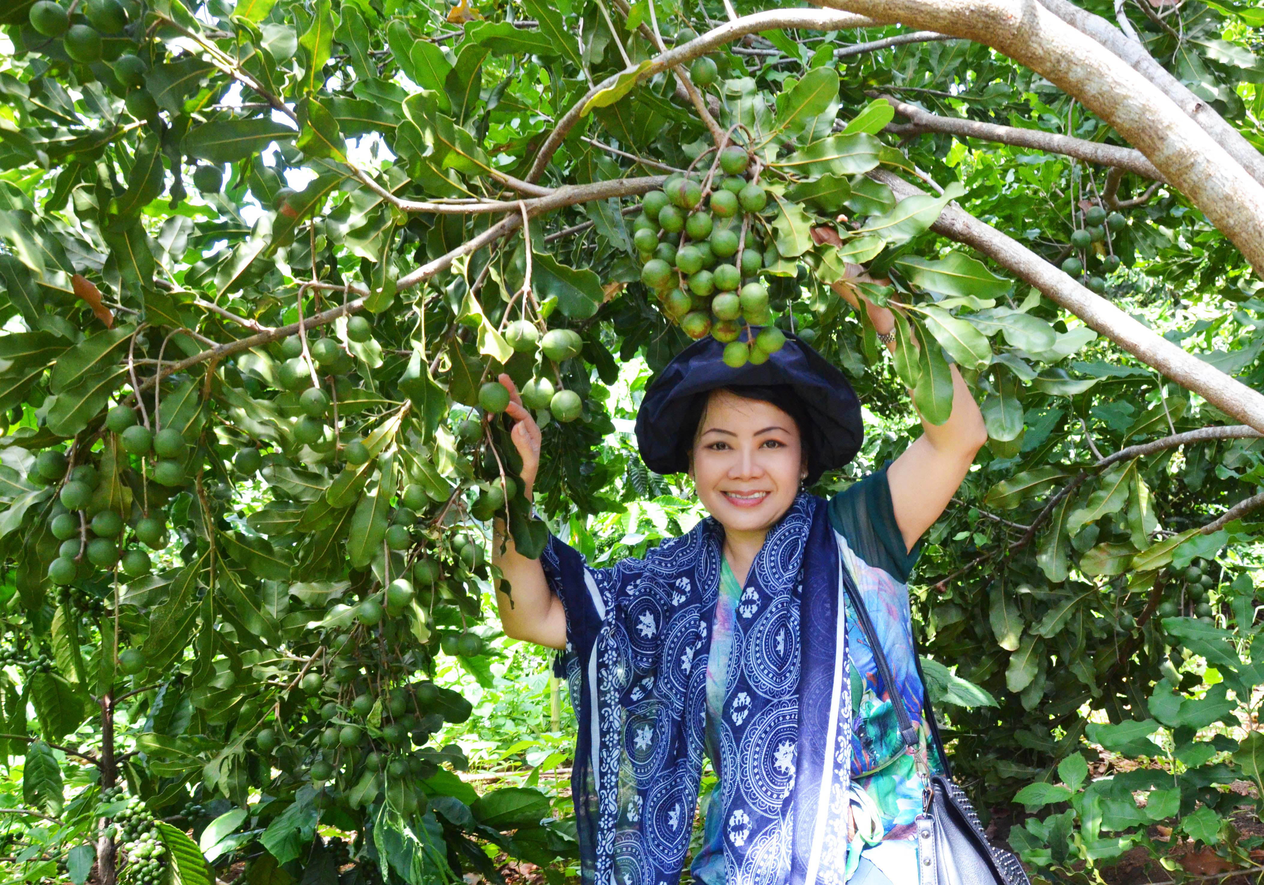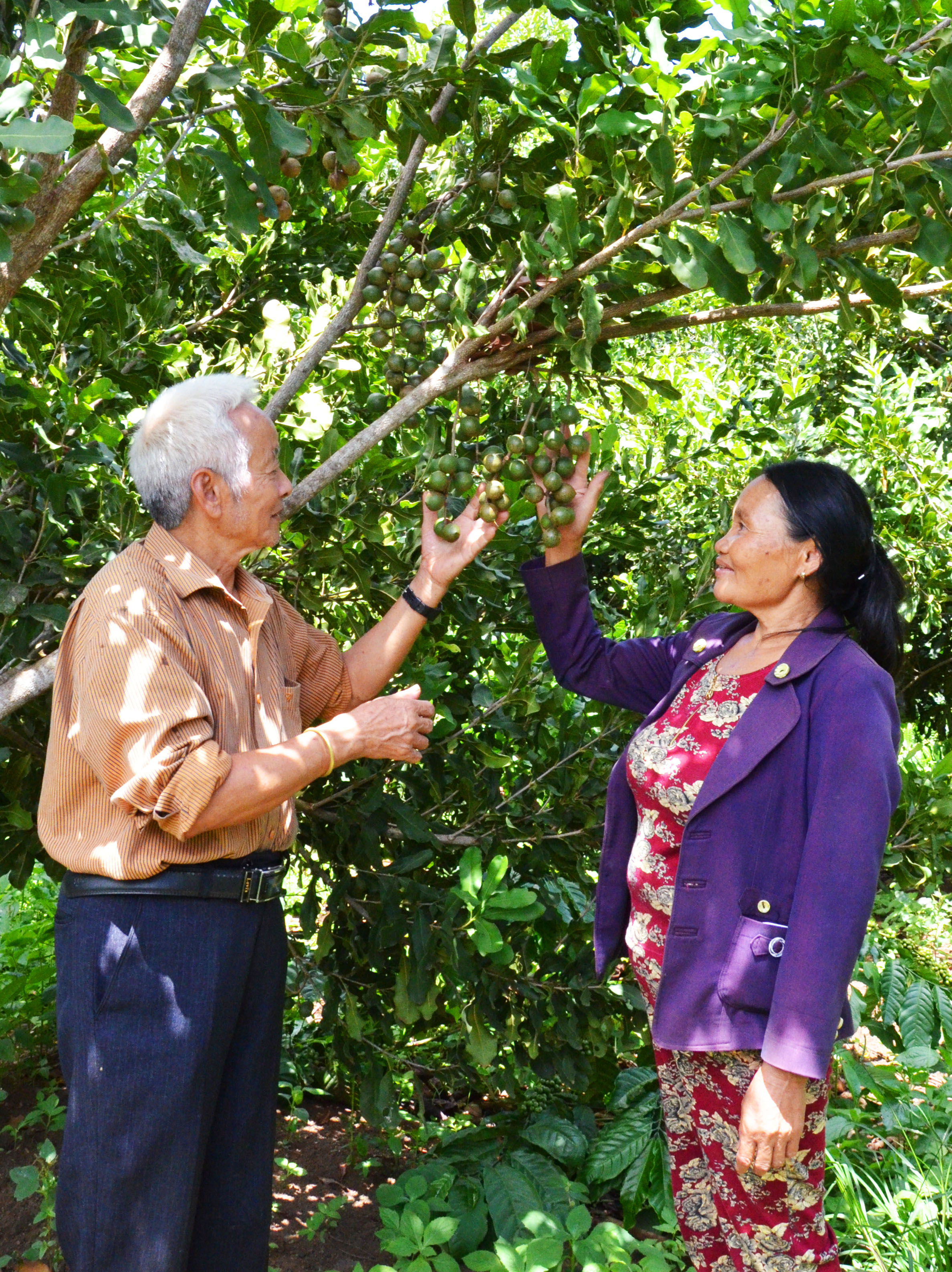 Ông Đại trèo lên cây mắc ca vừa vào tuổi thứ năm đã xum xuê um tùm, rẽ cành cho tôi xem những chùm quả chi chít giấu trong tán lá. Đi giữa những hàng mắc ca trĩu quả, bà Đinh Thị Tuyết Lan vợ ông Đại vui vẻ kể: Cái loài mắc ca thật dễ tính! Chỉ cần giống chuẩn, đào hố vừa sâu, cắm xuống, là nó lên tốt như cây rừng. Rẫy trồng cà phê tưới bón bao nhiêu thì cắm thêm mắc ca vào cũng chỉ tưới bón bấy nhiêu, mà mới tuổi này, lợi nhuận từ mắc ca đã cao gấp đôi ba lần cà phê đấy !