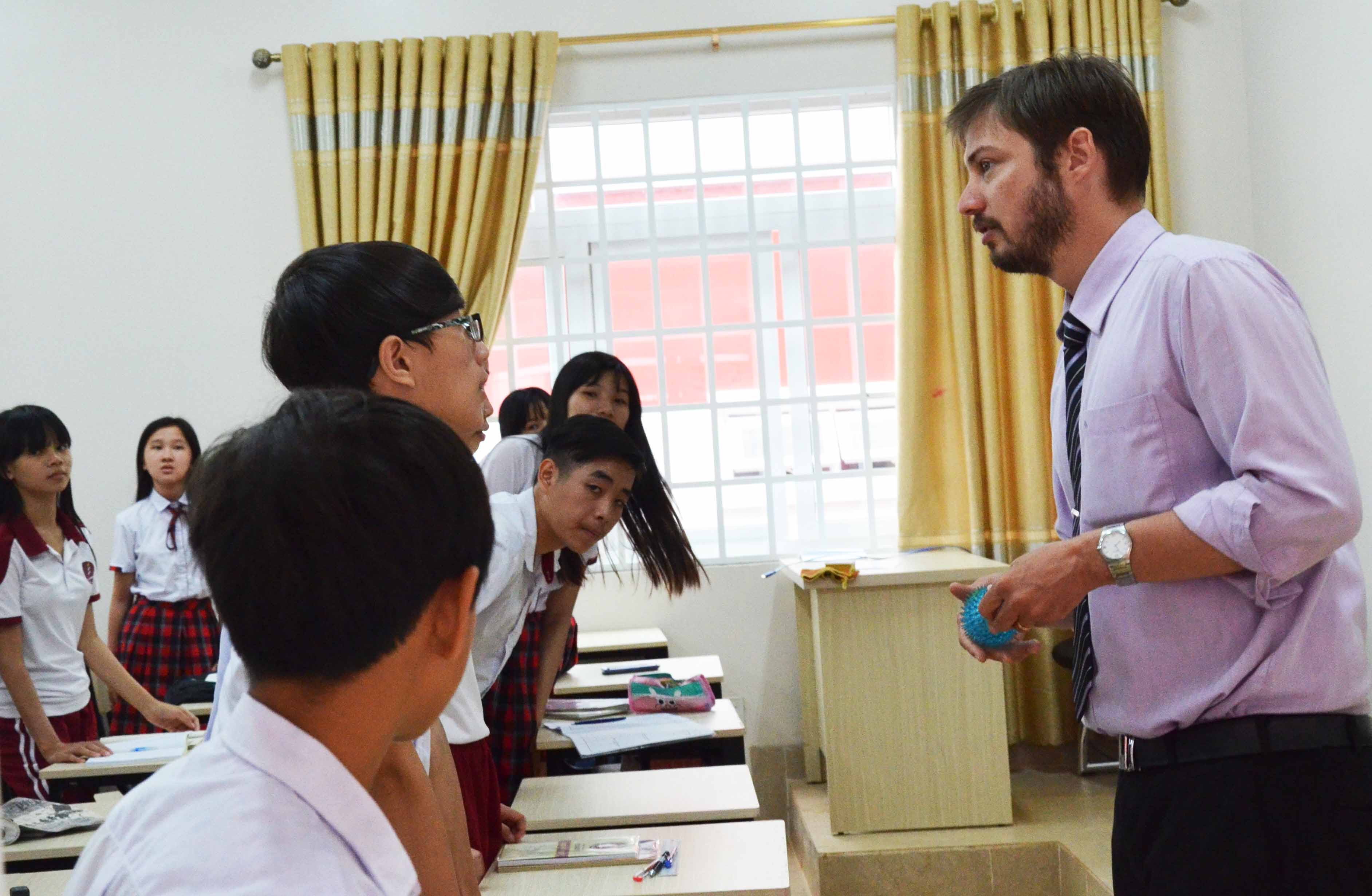 Giờ học tiếng Anh sinh động với thầy Timothy Scoh ở trường Hoàng Việt
