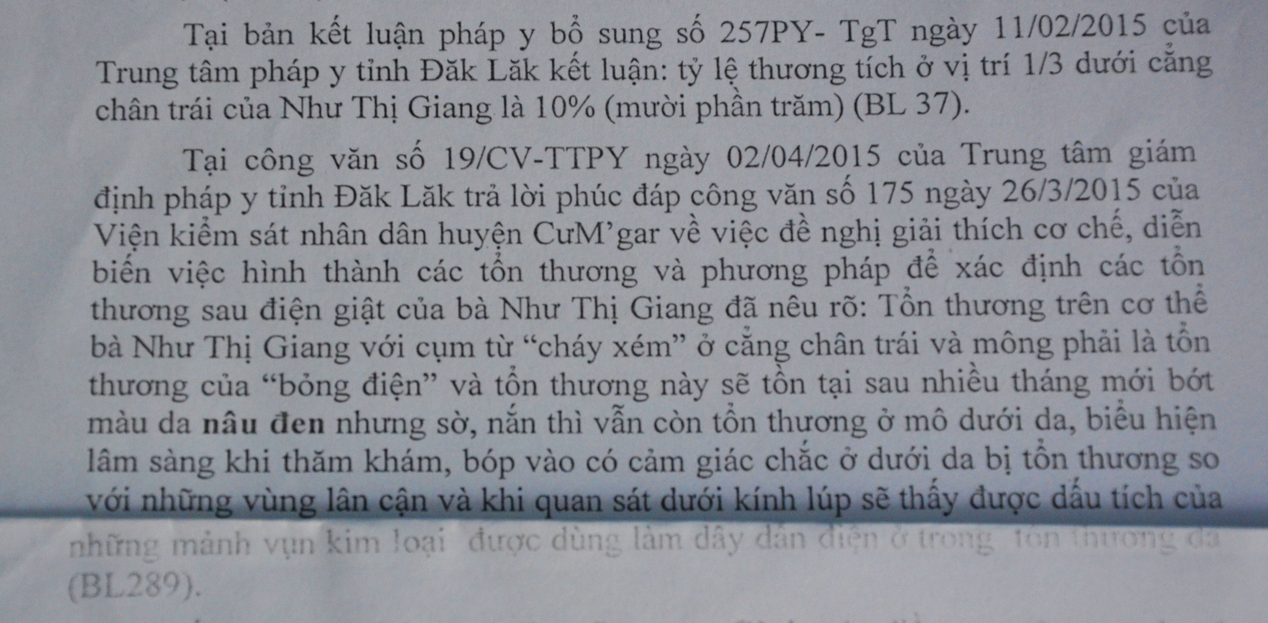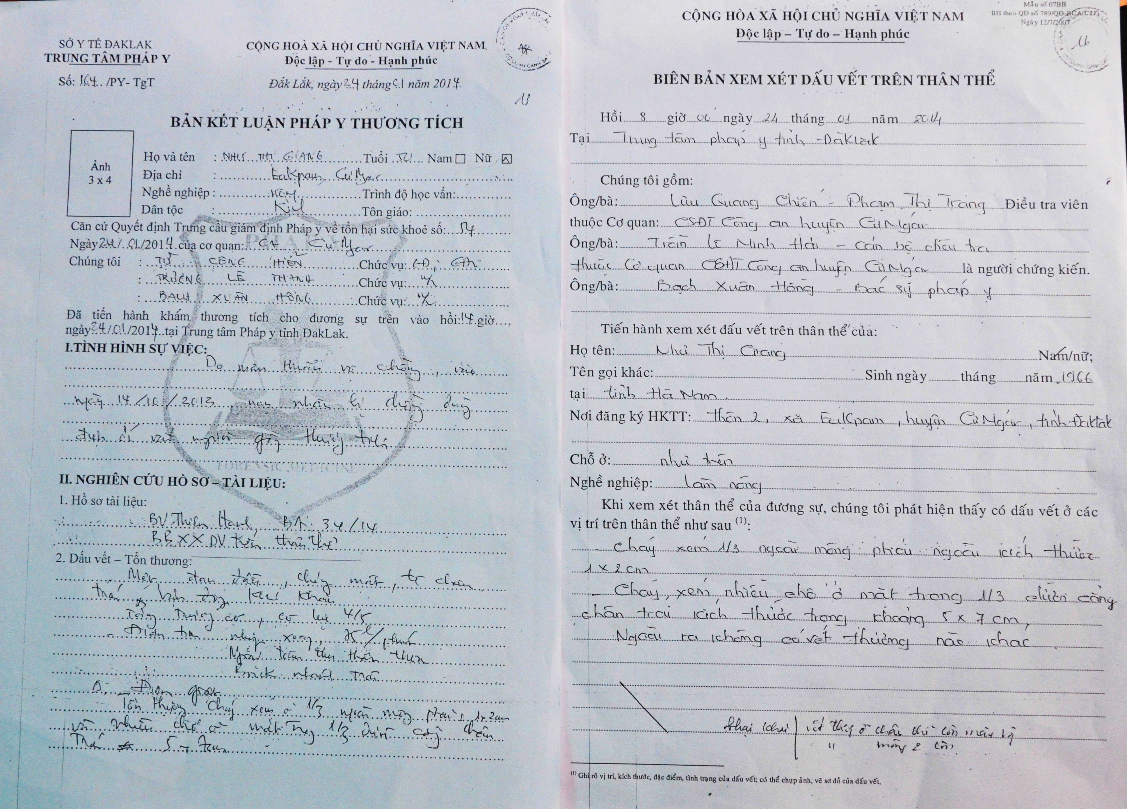 Cậu học trò vô tội thành phạm nhân, vì bản giám định pháp y (GĐPY) thương tích số 1164 kết luận ông Thọ chấn thương sọ não, liệt nửa người trái, tỉ lệ thương tật 50%, do giám đốc Trung tâm pháp y tỉnh Đắk Lắk (TTPY) kiêm giám định viên Từ Công Hiển ký. GĐPY ghi “Căn cứ hồ sơ bệnh án”, dù toàn bộ hồ sơ bệnh án 2 bệnh viện mà ông Thọ nhập viện đều xác nhận ông Thọ bị bệnh nội khoa, không có thương tích gì trên thân thể.