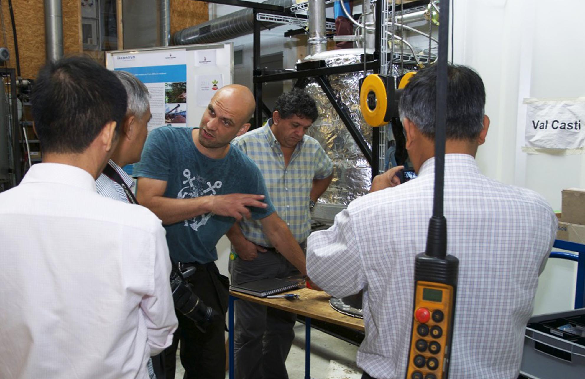 Khóa đào tạo 10 ngày diễn ra tại Oko Zentrum (Trung tâm nghiên cứu Sinh thái – Thụy Sĩ) được giảng dạy bởi những chuyên gia năng lượng hàng đầu như nữ tiến sĩ Hacker, tiến sĩ Martin Schmid giám đốc Trung tâm, cố vấn về năng lượng và sinh thái cho Chính phủ Thụy Sĩ. Mục tiêu của Oko Zentrum là nghiên cứu và tạo ra các sản phẩm có lợi cho môi trường, rồi chuyển giao cho những nhà sản xuất có khả năng chế tạo với giá rẻ nhất. Sản phẩm đầu tay của 2 anh em sau chuyến đi, là hệ thống máy sấy nhiệt phân mà anh Vinh đưa tôi đi xem. Nhiên liệu vỏ quả cà phê đốt nóng lên tới 1.2000C trong tâm lò đốt đưa ra hòa trộn với khí sạch để chỉ sau 14 giờ đủ sấy khô 4 tấn cà phê quả tươi, không ô nhiễm môi trường, lại cho ra 2 loại phụ phẩm quý là than sinh học và “dấm gỗ”- một nguyên liệu để bào chế thuốc trừ sâu sinh học, không mùi, vô hại. Anh Vinh cho biết, giàn máy tương tự, công suất tương đương, chế tạo tại Thụy Sĩ giá 360.000 Euro. Còn ở đây, chỉ khoảng 25.000 USD !
