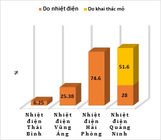 Các nhà máy nhiệt điện than là nguồn phát thải lớn nhất trong lĩnh vực năng lượng và là nguyên nhân chính gây ô nhiễm không khí. Tất cả các giai đoạn trong vòng đời sản xuất điện than từ khai thác, chế biến, vận chuyển, đốt và xử lý tro xỉ đều thải ra các chất gây ô nhiễm không khí bao gồm các loại bụi, khí độc (SO2, NOx, CO …) và các loại khí nhà kính (CO2, CH4 …). Bảng dưới đây cho biết hiện trạng tỷ lệ các chất gây ô nhiễm không khí từ nhiệt điện than: