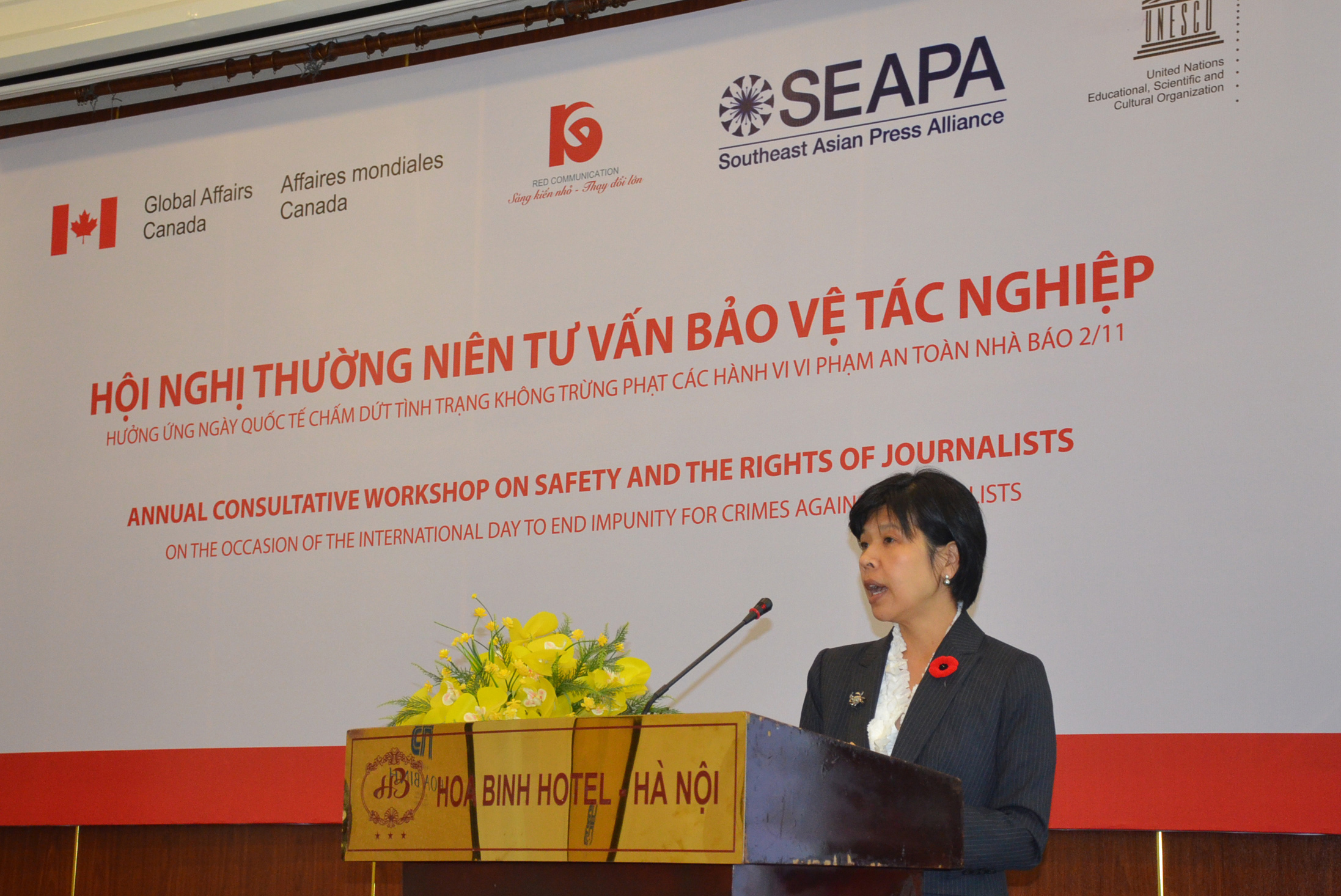 Liên hiệp quốc đã chọn 2/11 là “ngày quốc tế chấm dứt tình trạng không trừng phạt các hành vi vi phạm an toàn báo chí”, nhằm kêu gọi bộ máy thi hành pháp luật và xã hội ở nhiều quốc gia chấm dứt miễn trừ đối với hành vi xâm hại tới quyền tác nghiệp hợp pháp của báo chí. Tại hội nghị, bà Misaco Ito đại diện UNESCO Bangkok cho biết trên toàn thế giới, trung bình cứ mỗi 5 ngày lại có 1 phóng viên bị giết, hơn 800 trường hợp trong 10 năm qua. Có đến 9/10 trường hợp các vụ việc những người phạm tội không bao giờ bị trừng phạt. Mỗi vụ tấn công vào nhà báo là 1 vụ tấn công vào quyền được biết và quyền tự do biểu đạt. Không trừng phạt lại tạo ra bạo lực và nguy cơ uy hiếp báo chí. UNESCO đã đưa ra bộ chỉ số đo lường mức độ an toàn của nhà báo khi tác nghiệp ở mức độ quốc tế và quốc gia, gọi là chỉ số an toàn nhà báo.
