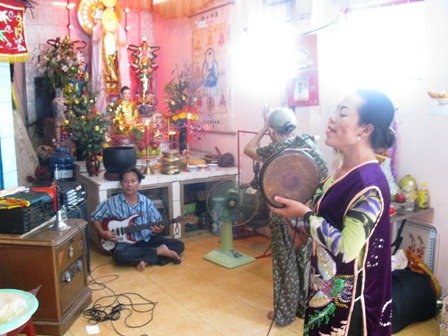 Vừa rồi, một ngôi miếu Ngũ Hành nằm ở đường Trương Đăng Quế (phường 3 Gò Vấp), dù chẳng rõ dự án mở rộng con đường này có thực hiện hay không, tức tương lai ngôi miếu có bị giải tỏa trắng hay không, trước mắt vẫn rục rịch tô sửa, sơn phết chuẩn bị cho kỳ vía Bà năm nay. Đúng ra, theo chị Dung, người vừa coi sóc miếu vừa có nghề tế bóng rỗi, bà con ở đây vẫn có lệ riêng là bất kỳ lúc nào trong năm, hễ trong bổn đạo có ai phát tâm cúng Bà là đến nhờ chị tổ chức, sửa soạn mâm lễ, chứ không cần chờ đến kỳ vía tháng Ba âm lịch như lúc này mới cúng.