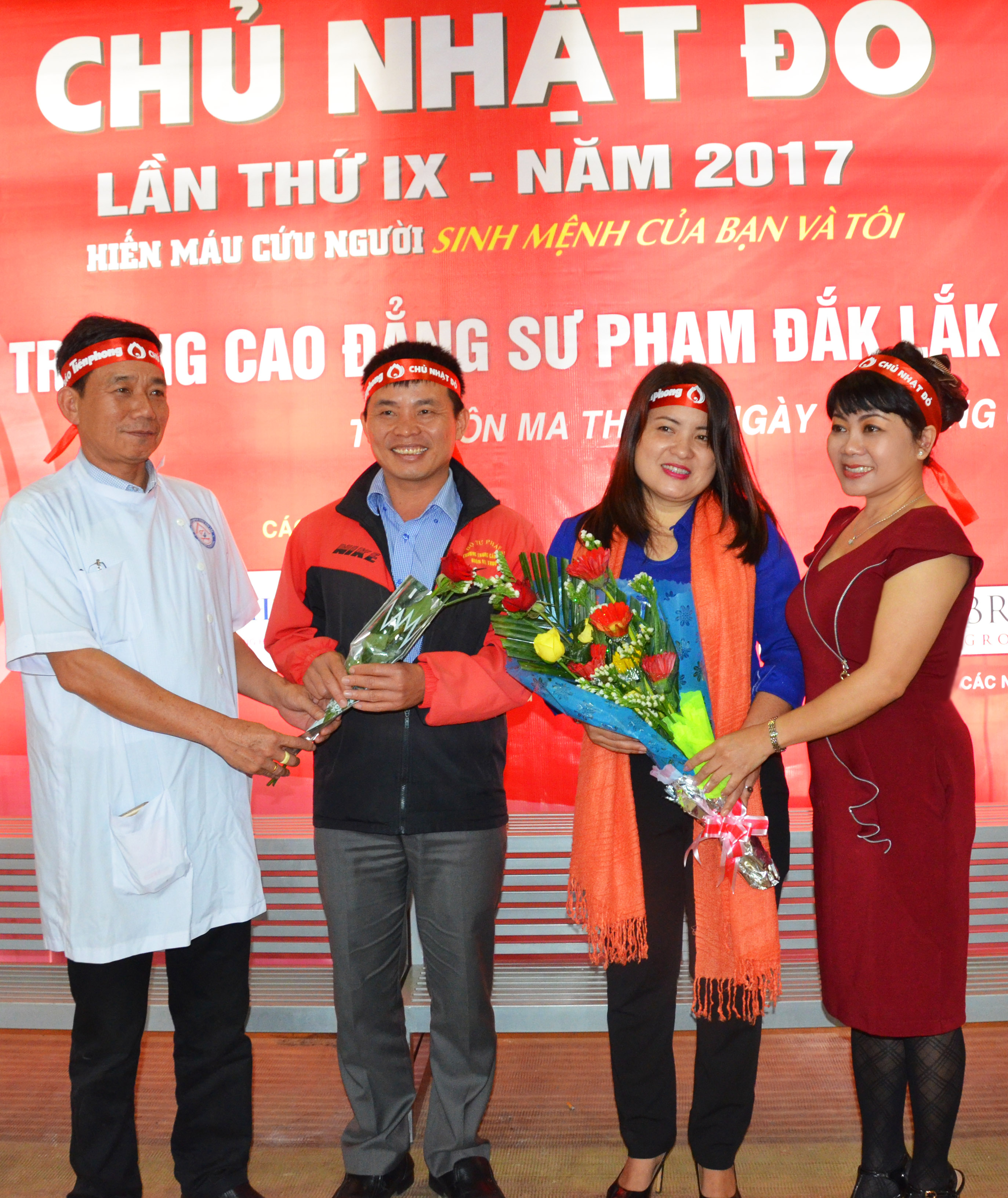 Khuôn viên trường rộng thoáng, khang trang rực rỡ hơn với các băng rôn, cờ phướn tuyên truyền về ngày Chủ Nhật Đỏ (CNĐ). Đây là lần thứ 3 trường CĐSP Đắk Lắk đồng hành cùng chương trình. So với các điểm đăng cai tổ chức CNĐ khác, lực lượng của trường CĐSP Đắk Lắk có phần trẻ hơn, mỏng hơn hơn tinh thần vẫn tưng bừng hăng hái.