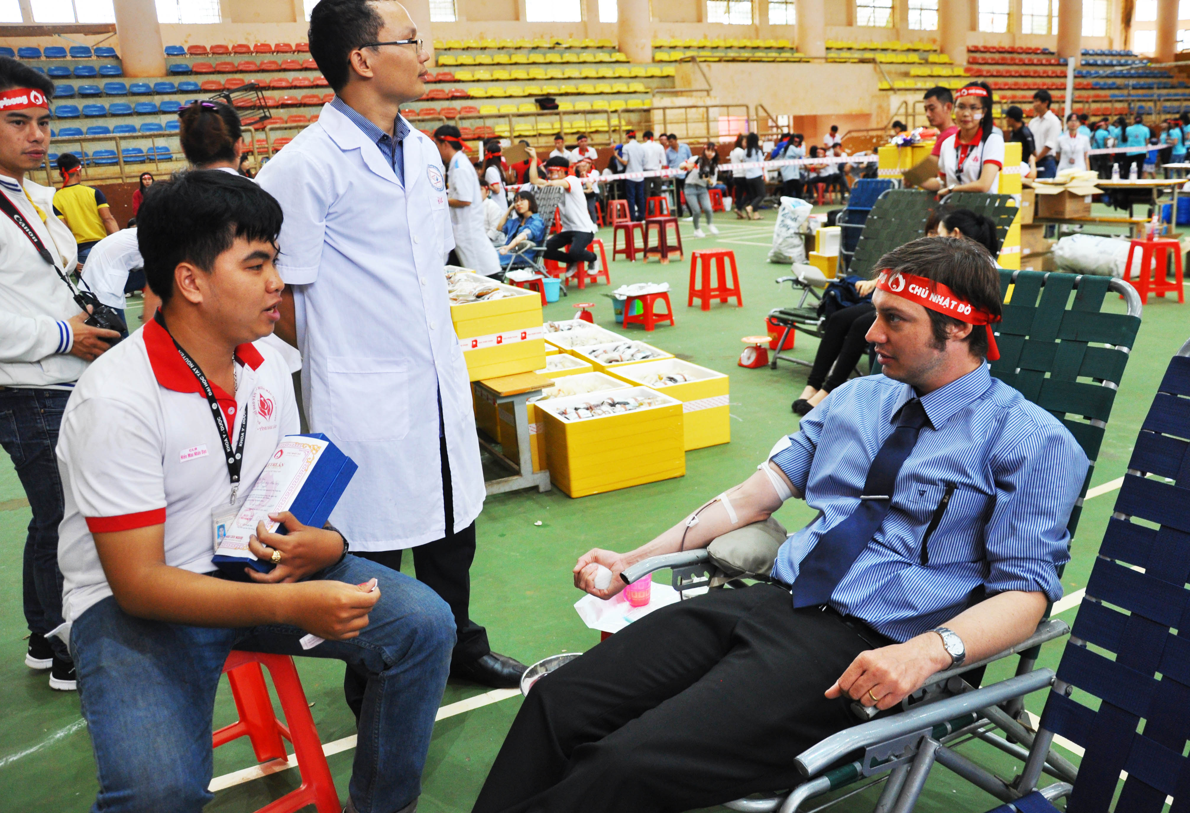 Thích thú nhận lời mời tham gia hiến máu Chữ Nhật Đỏ, thầy Timothy Scoh Shapico người Mỹ, có vợ Việt đang học thêm văn bằng 2 tại trường ĐH Tây Nguyên, định cư lâu dài tại Đắk Lắk để dạy tiếng Anh tại trường Hoàng Việt cởi mở chia sẻ với báo Tiền Phong: Khi còn ở bên Mỹ tôi cũng thường xuyên hiến máu theo định kỳ, thường 4-5 lần/ năm. Quy trình hiến máu ở đâu cũng như nhau, chỉ khác là chúng tôi đến hiến tại bệnh viện, chứ không có những sự kiện tập trung thú vị như ở đây. Vì việc hiến máu góp phần cứu mạng sống quý giá cho nhiều người, nên tôi rất vui khi được hiến máu tại Việt Nam.