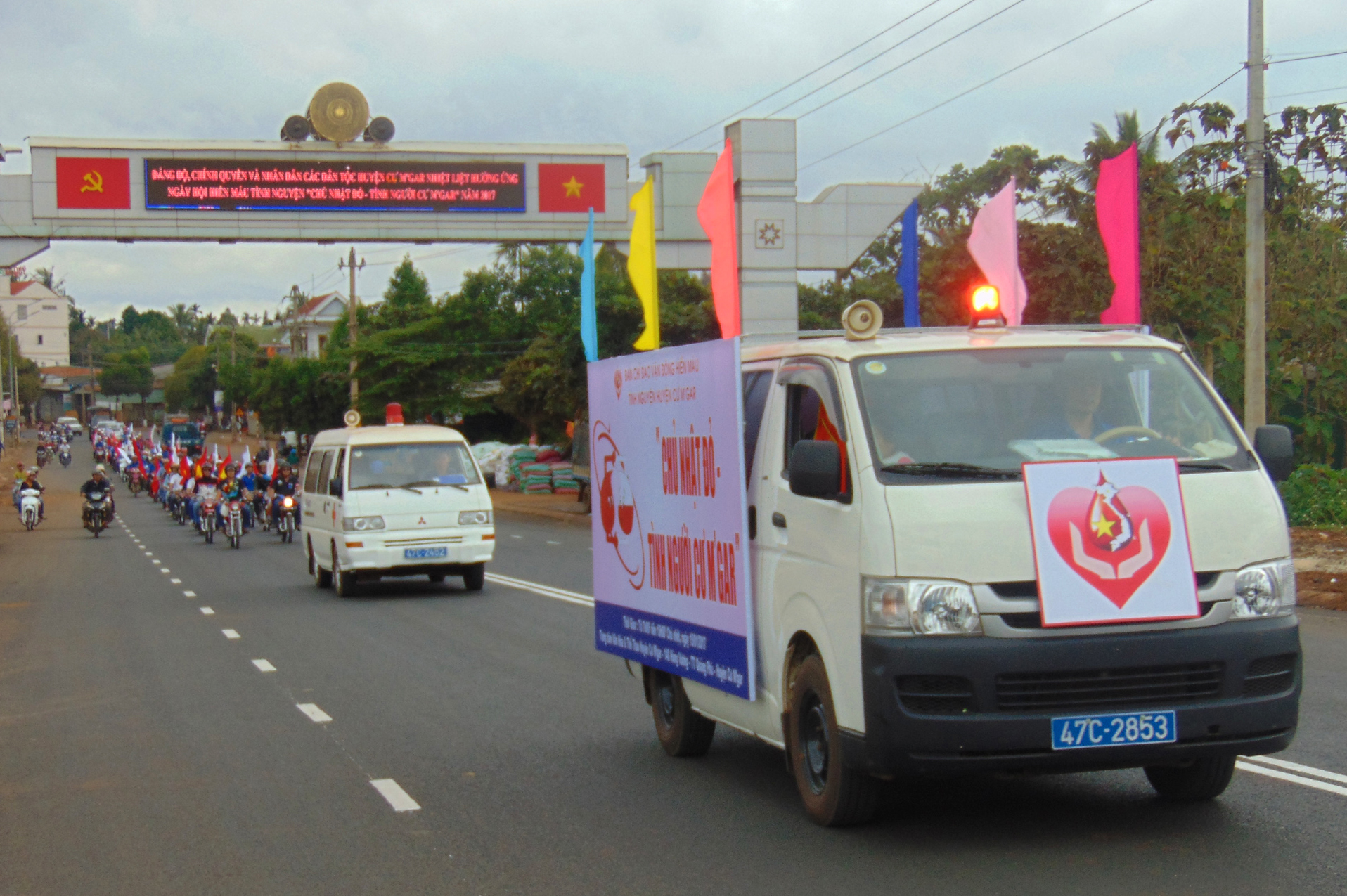 Buổi lễ kết thúc với phần diễu hành cổ động rầm rộ do khối mô tô công an huyện dẫn đầu, các xe ô tô gắn băng rôn phát loa tuyên truyền nối theo, cùng xe máy hàng trăm chiếc gắn cờ biểu trưng Chủ Nhật Đỏ phấp phới tươi vui suốt chặng đường hàng chục cây số qua thị trấn Quảng Phú, xã Quảng Tiến, thị trấn Ea Pốk đến tận xã Cư Suê…