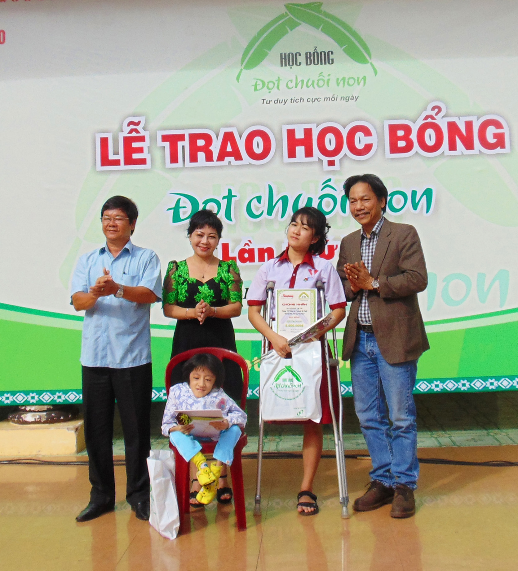 Nhưng rồi trước ngày chúng tôi tổ chức đợt trao học bổng Đọt Chuối Non vào mùa thu năm 2015, cuộc khủng bố đẫm máu đã xảy ra giữa Paris. Từ Pháp, bà Nicole Trampoglieri nhắn tôi gửi danh sách 10 gương sáng để Hội tiếp tục tài trợ. Dù không trực tiếp sang được, Hội đã thiết kế bì thư đựng tiền học bổng theo mẫu riêng, ủy quyền nhờ phó giáo sư Trịnh Đức Thái- trưởng khoa Pháp văn trường đại học Ngoại ngữ bay vào, trao tận tay các học sinh hiếu học, hiếu thảo.