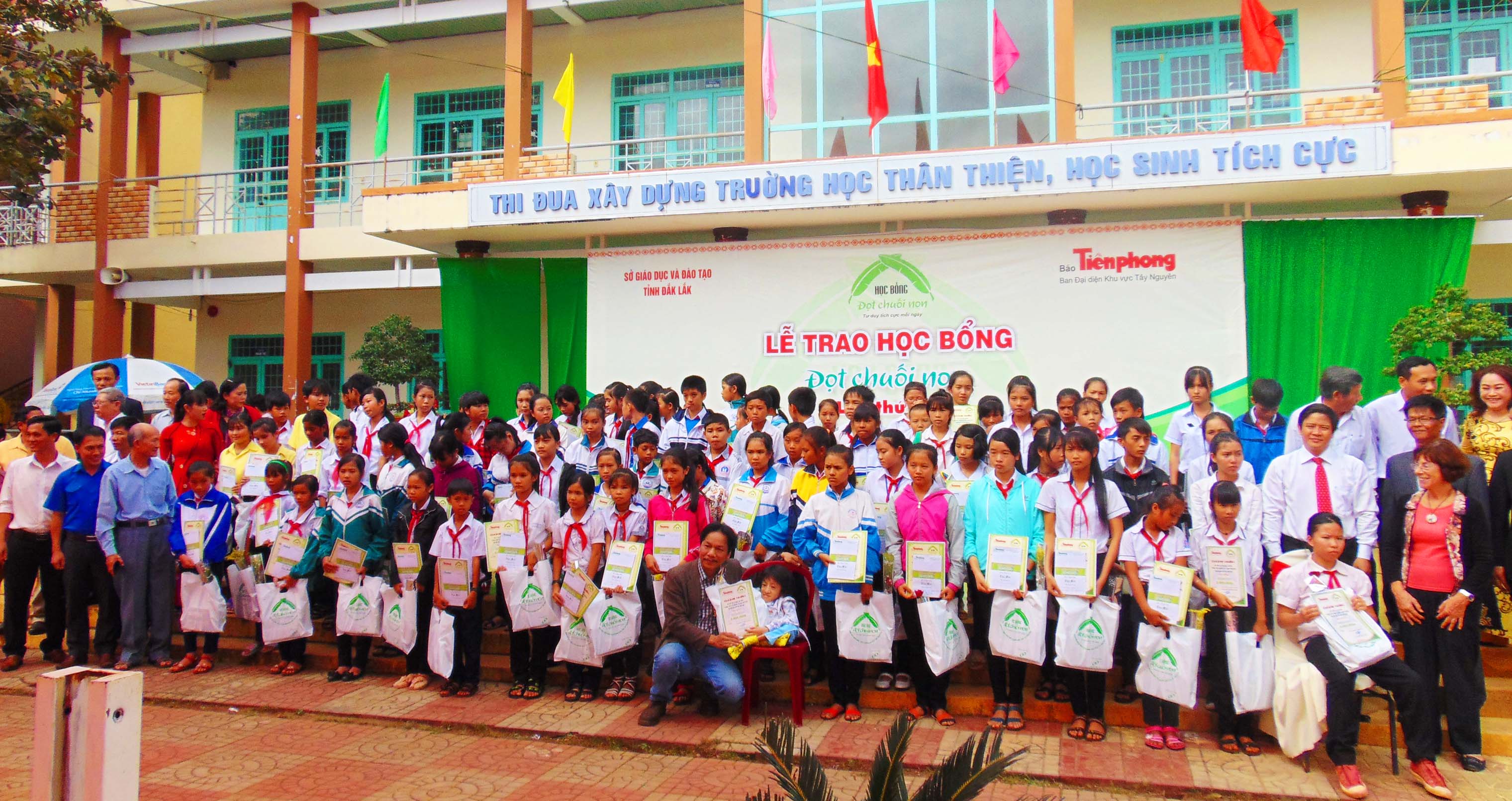 Khi đó Ban Đại diện báo Tiền Phong khu vực Tây Nguyên đang chuẩn bị tổ chức trao học bổng Đọt Chuối Non lần thứ năm. Nghe tôi giới thiệu về chương trình chuyên nâng đỡ những học sinh đặc biệt hiếu học, hiếu thảo này, Hội Hữu nghị nhất trí nhận lời tài trợ mỗi năm 10 suất, mỗi suất 2 triệu đồng. Số tiền không quá lớn, nhưng giá trị lan tỏa ý nghĩa chương trình học bổng bé nhỏ sang tận trời Âu khiến tôi ấm lòng. Tháng 11/2014, đoàn của Hội Hữu nghị Pháp Việt vùng Choisy Le Roi lần đầu tiên đến Đắk Lắk, gồm thủ thư Evelyne Boscheron mắt xanh biếc tóc đỏ xù, tiến sĩ môi trường Eric Marazanoff tráng kiện vui tính, ông Raymond Trampoglieri thường trực kính đen chống gậy dò đường, và bà Nicole Trampoglieri nhanh nhẹn tinh tế mọi nơi, mọi lúc.