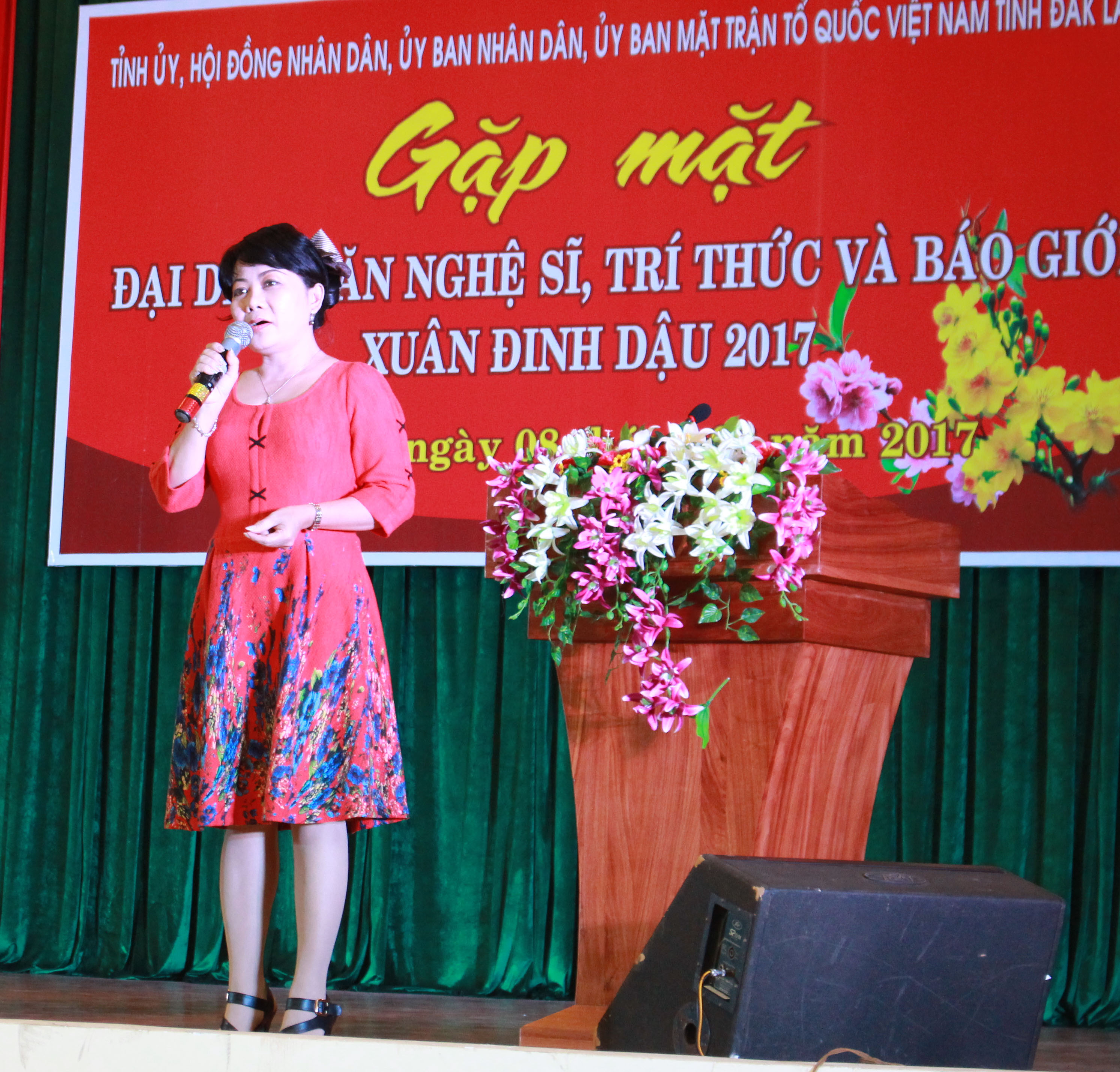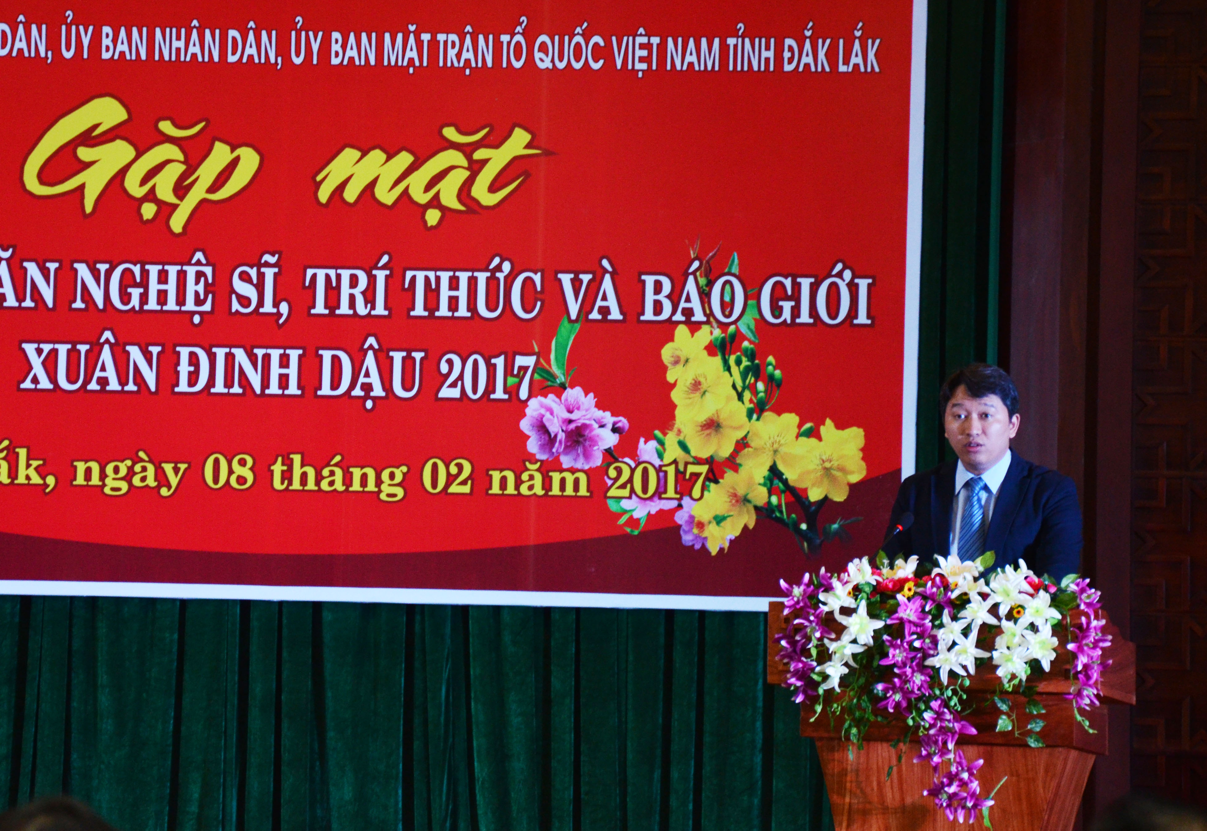 Tại buổi gặp mặt, ông Nguyễn Hải Ninh, Ủy viên dự khuyết Trung ương Đảng, Phó Chủ tịch thường trực UBND tỉnh Đắk Lắk thông báo về các thành tựu cơ bản năm qua tỉnh đã đạt được trên nhiều lĩnh vực: Tổng sản phẩm xã hội hơn 44,5 nghìn tỷ đồng, tăng trưởng kinh tế 7,02%; thu ngân sách đạt 4.100 tỷ đồng; tổng kim ngạch xuất khẩu 550 triệu USD; thu nhập bình quân đầu người 36,7 triệu đồng; giải quyết việc làm cho 26.500 lao động; số xã cơ bản đạt tiêu chuẩn nông thôn mới 13,2%. Lãnh đạo tỉnh đánh giá trong những thành tựu đó có sự đóng góp không nhỏ của đội ngũ văn nghệ sĩ, trí thức, báo chí hoạt động rất tích cực, nhiều cống hiến trên địa bàn; Đồng thời mong muốn năm 2017, giới văn nghệ sĩ, trí thức và báo chí tiếp tục cổ vũ động viên phong trào thi đua trên mọi lĩnh vực của quân dân, đồng bào các dân tộc tỉnh; góp phần hỗ trợ tỉnh tổ chức thành công Lễ hội Cà phê Buôn Ma Thuột lần thứ 6 và Liên hoan Văn hóa Cồng chiêng Tây Nguyên năm 2017.
