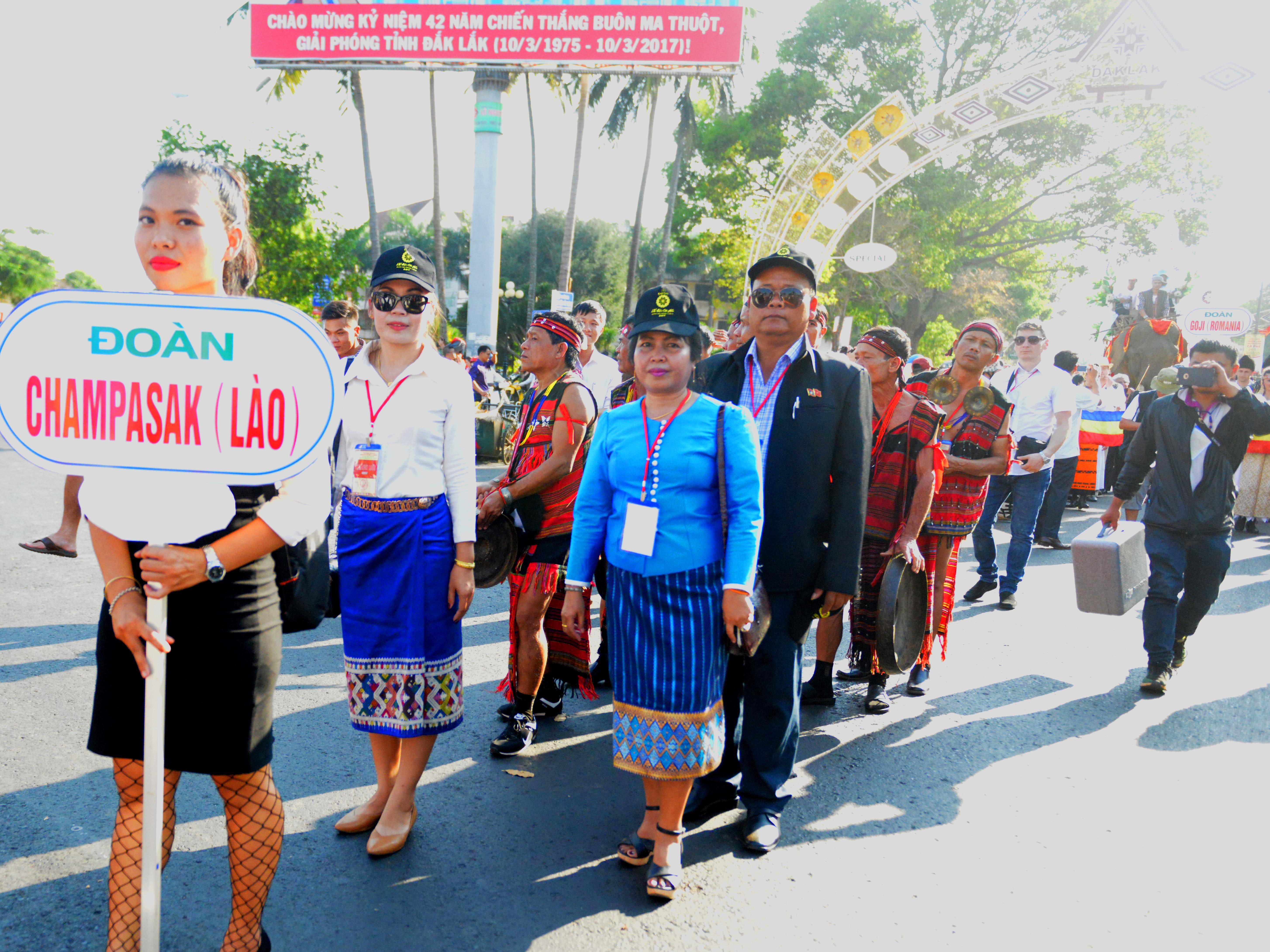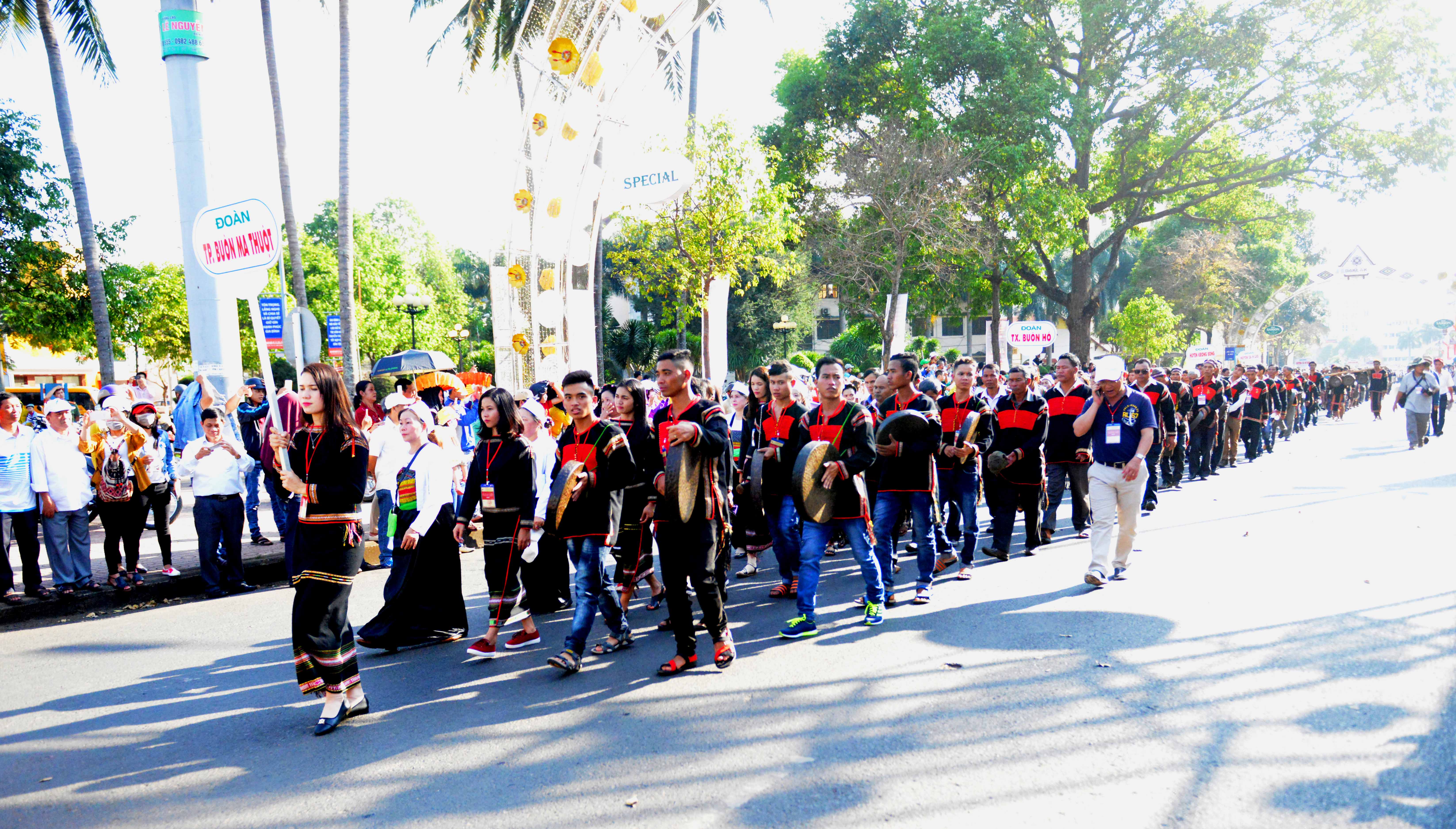 Chiều ngày 10/3/2017, dưới ánh nắng tháng Ba óng vàng như rót mật trong thời tiết mát dịu, đông đảo lãnh đạo các bộ, ngành, các đoàn khách nước ngoài, các Đại sứ, Lãnh sự quán, các tổ chức quốc tế, dân chúng và du khách đã được chứng kiến một lễ hội đường phố rực rỡ, tưng bừng chưa từng có trên Tây Nguyên, với hàng vạn nghệ nhân, nghệ sĩ, các đoàn nghệ thuật trong- ngoài nước, đồng bào các dân tộc trong trang phục truyền thống rạng rỡ tham gia.