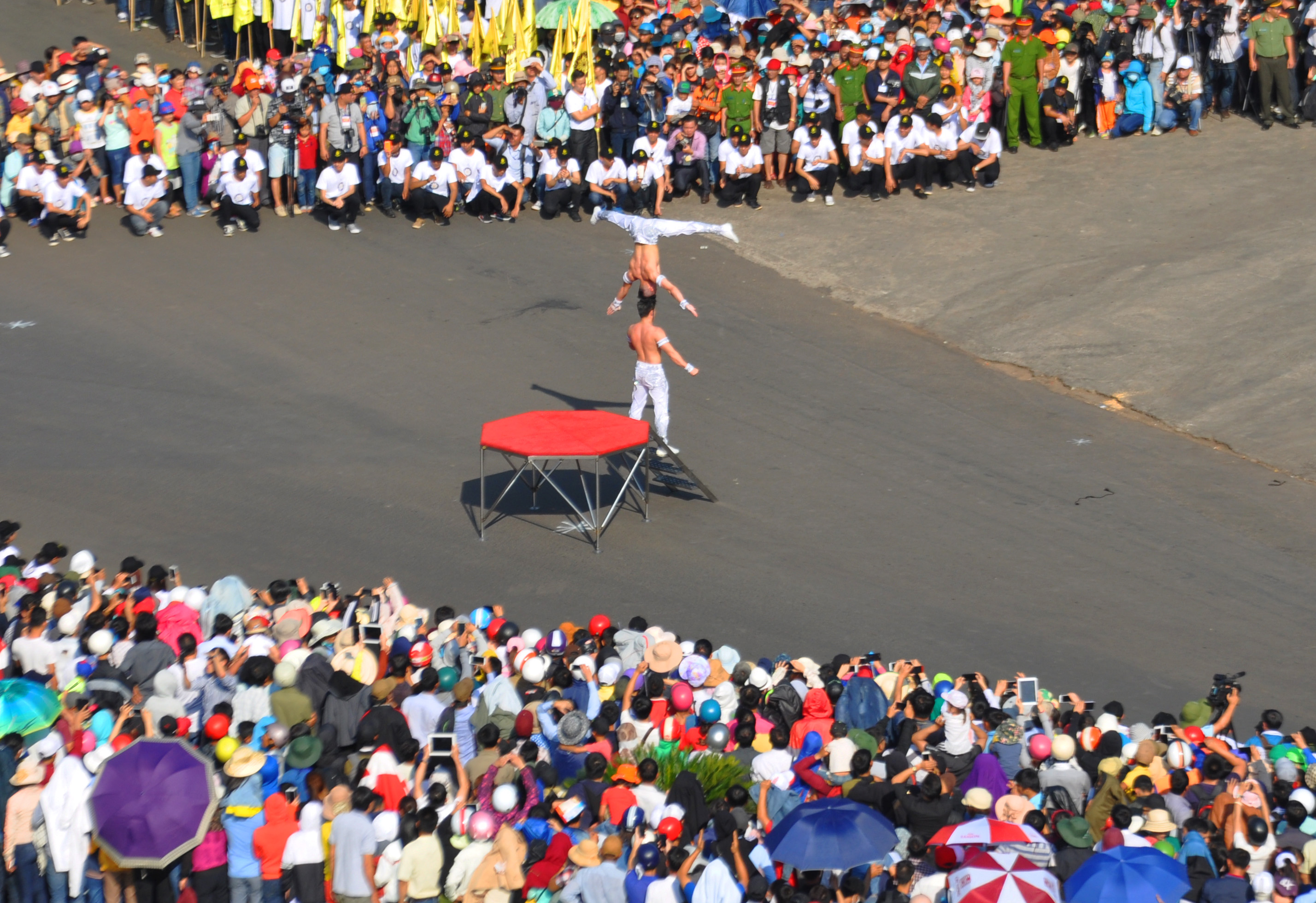 Tất cả tầng thượng của các tòa nhà cao tầng quanh ngã Sáu trung tâm Buôn Ma Thuột đều được hàng trăm phóng viên chiếm lĩnh, chĩa ống kính tele xuống mặt đất. Nhiều người chăm chú điều khiển flycam vè vè lượn quanh tượng đài Chiến thắng quay toàn cảnh. Sau màn ca múa ngọt ngào “Mời bạn đến Ban Mê” với giọng ca Đông Quân, cùng 20 ca sĩ và 60 diễn viên múa phụ họa, tiết mục xiếc kỹ thuật cao “Sức mạnh đại ngàn” đặc biệt xuất sắc của đôi anh em NSƯT Quốc Cơ- Quốc Nghiệp được hoan nghênh vang dội.