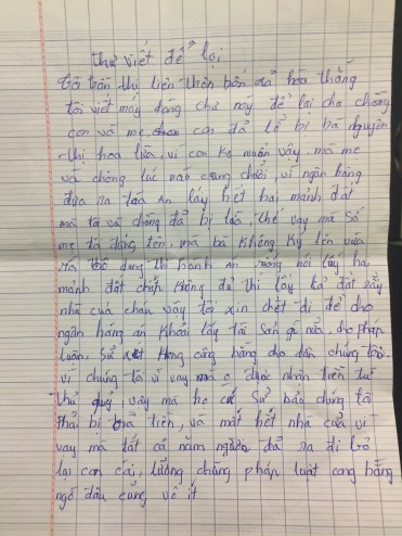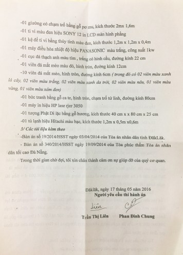 Bà Trần Thị Quý chị gái của bà Liên chiều đó đã chở bà Liên ra cơ quan Thi hành án. Nghe chị em bà Liên trình bày gia cảnh khốn cùng, một nữ cán bộ tên Dung mủi lòng, hướng dẫn làm đơn trình bày hoàn cảnh gia đình có công để xin trả dần nửa gói nợ. Bà Liên năn nỉ nửa gói còn lại cũng cho vợ chồng bà làm thuê trả dần, cán bộ lắc đầu. Bà Liên khóc “vậy thì tui chết cho xong” !