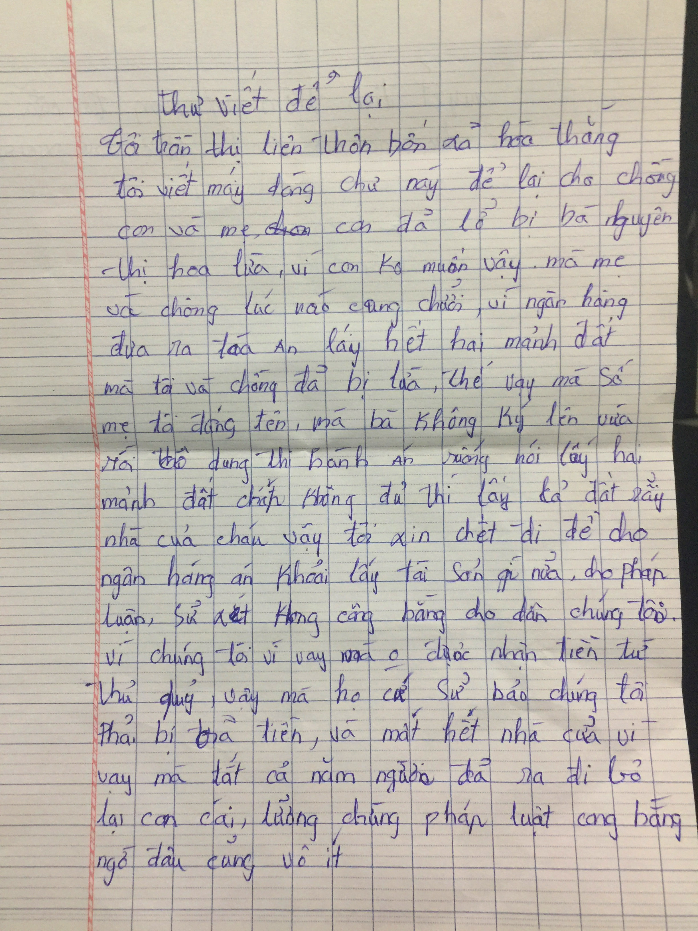 Cả thôn 4 xã Hòa Thắng ngoại thành Buôn Ma Thuột nghe tin bà Trần Thị Liên tự tử, để lại lá đơn tuyệt mệnh mong cái chết của mình giúp các hộ dân khác “được nhờ” mà bàng hoàng, đau xót.