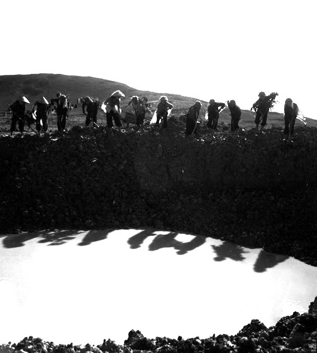 The greatest sacrifice: Female volunteers work on a bomb crater at the Đồng Lộc Junction in Hà Tĩnh Province, one of the most heavily bombarded site on the trail.Only a few of them survived the war.