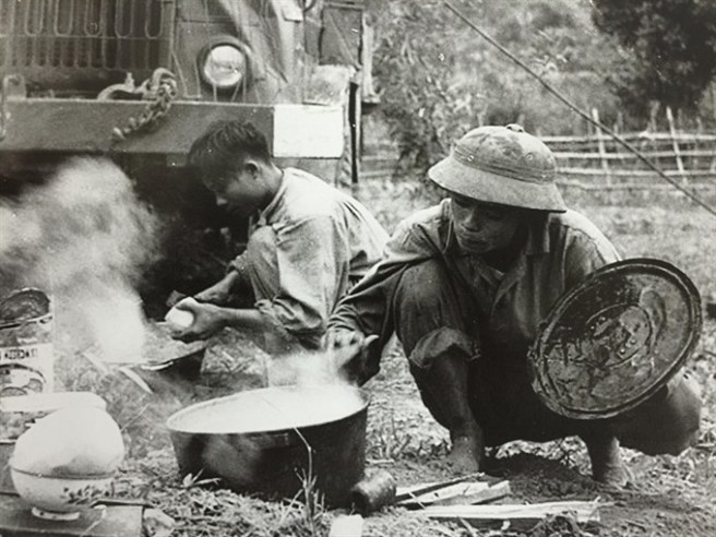 Sacred safety: Soldiers cook rice at a rest stop. Fierce fighting and constant threats from American bombers made every life moment invaluable to Vietnamese soldiers.