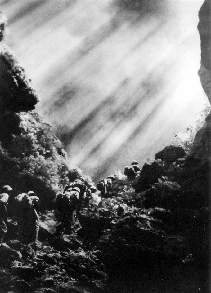 Platonic friendship: Soldiers reach the exit of a cave along the Hồ Chí Minh Trial. — VNA/VNS Photos