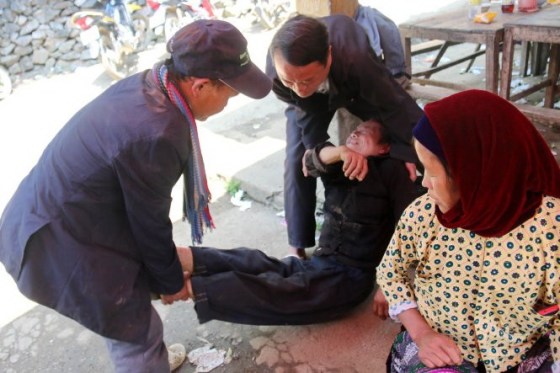 One early morning in late April, two Tuoi Tre (Youth) newspaper reporters were making their way through the crowds at Sa Phin Market in Dong Van District when a man donning a traditional black Mong shirt stumbled past and fell to the ground.