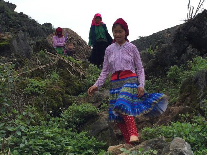 Mong girls are seen trudging on the rugged terrain on their way to a festival. Photo: Tuoi Tre