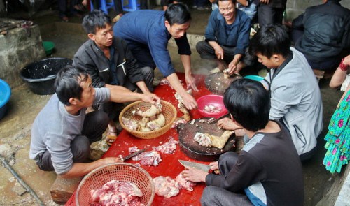 Cutting through the noise was the nauseating smell of freshly slaughtered cows and pigs mixed with the pungent scent of corn wine.