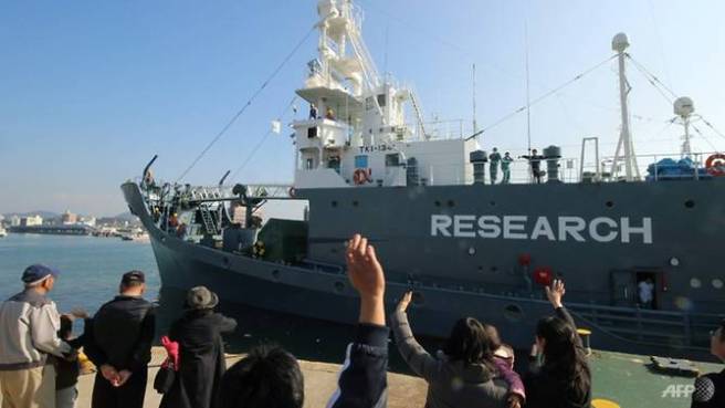 A Japanese whaling ship leaves the port of Shimonoseki in December 2015. (Photo: AFP/Jiji Press)