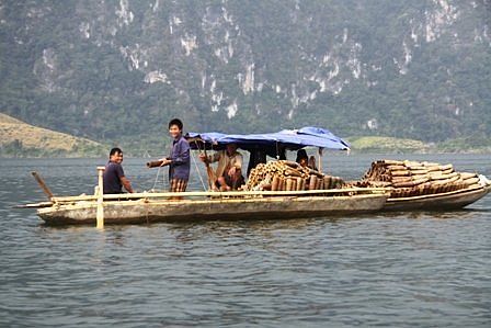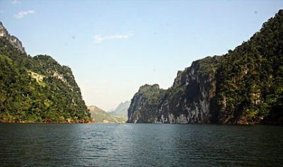 Chiếc tàu thủy rẽ sóng, rời bến Nghiêng (gần đập thủy điện Sơn La), không phải vượt ghềnh thác, các cửa tử, cửa sinh như “Người lái đò sông Đà” năm xưa, bởi từ ngày xây dựng đập thủy điện thì thượng nguồn sông Đà không còn hung dữ nữa mà trở thành vùng nước mênh mông với khung cảnh kỳ vỹ.