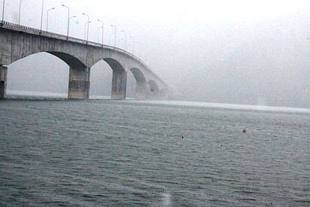 Sau khoảng 2 tiếng rưỡi đồng hồ, đến địa phận huyện Quỳnh Nhai. Xa xa cầu Pá Uôn ẩn hiện trong sương. Với trụ chính cầu cao 98 mét, đã được xếp hạng cao nhất Việt Nam. Từ ngày cầu nối nhịp đôi bờ sông Đà, những chuyến phà qua sông đến trung tâm huyện Quỳnh Nhai lùi vào ký ức. Bên tả ngạn là trung tâm huyện lỵ Quỳnh Nhai, dáng dấp phố núi mới mọc lên; kia đền Linh Sơn Thủy Từ – đền thờ Nàng Han linh thiêng. Hướng bên hữu ngạn, chợt bâng khuâng bến nước Nghe Tỏng, đong đầy nỗi nhớ Mường Chiên xưa. Đôi bờ, bên nhớ, bên thương, thấp thoáng những bản tái định cư, bếp tỏa khói lam chiều, gợi nhớ miền quê xưa.