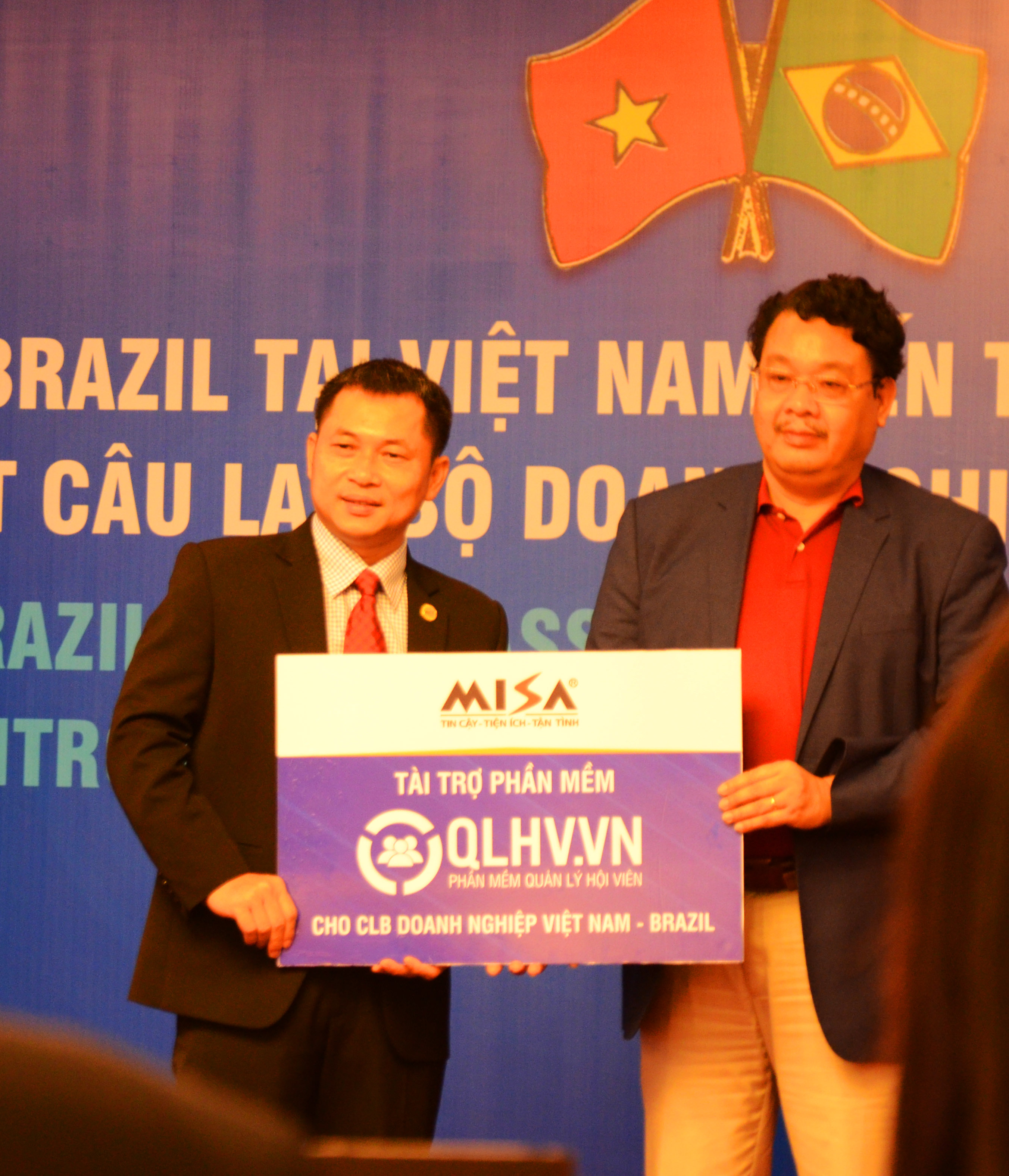 Ông Vũ Tri Thức GĐ Cty CP Misa tặng phần mềm cho Câu lạc bộ DN VN Brazil