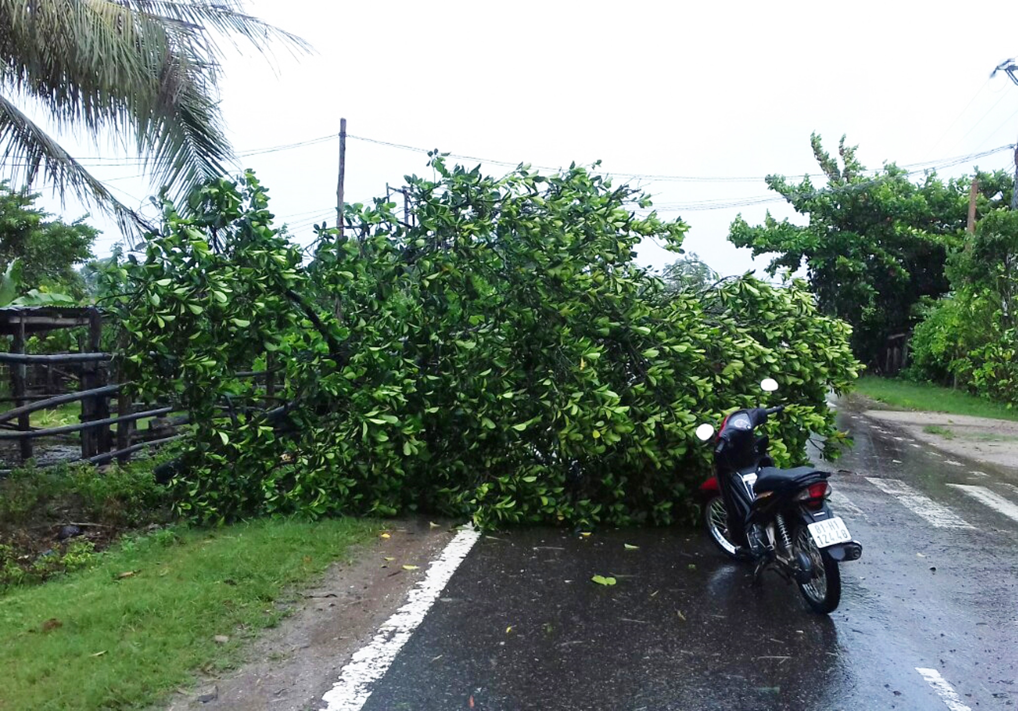 Trên đường Nguyễn Du, một cây vông đường kính khoảng 70cm đổ làm hỏng đường dây truyền tải điện. Ngành điện nhanh chóng ngắt điện đảm bảo an toàn. UBND phường 9 phối hợp cơ quan chức năng huy động lực lượng giải tỏa hiện trường để thông xe.