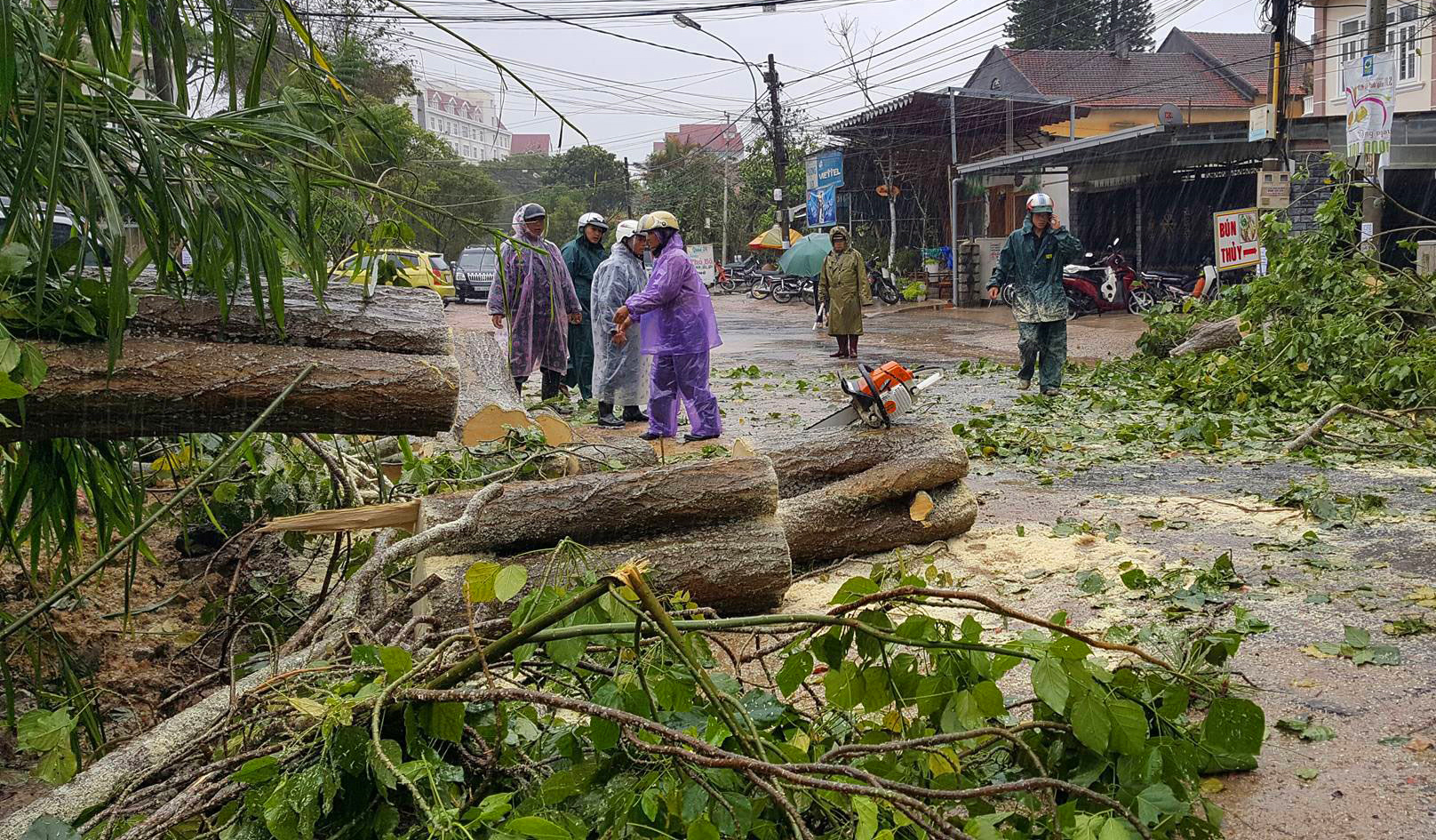 Cây đổ ở Đắk Lắk và cảnh khắc phục sự cố tại hiện trường