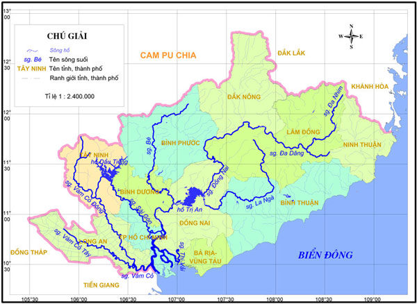 Sông Đa Nhim, góp nước vào sông Đắc Dung ở Đại Ninh. Ở khoảng hợp lưu với sông Bé thì có đập Trị An chắn dòng sông, tạo nên hồ nước nhân tạo lớn nhất miền Nam, tức hồ Trị An cung cấp nước cho nhà máy thủy điện Trị An. Hồ Trị An cũng là nơi sông La Ngà từ triền núi phía nam cao nguyên Di Linh dồn nước về.