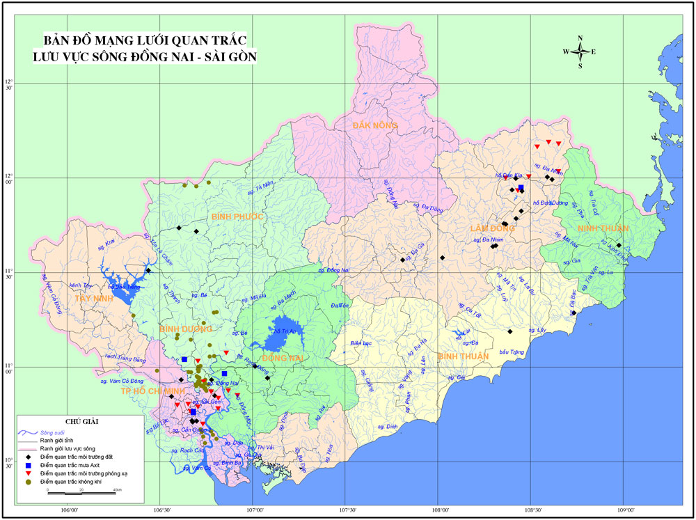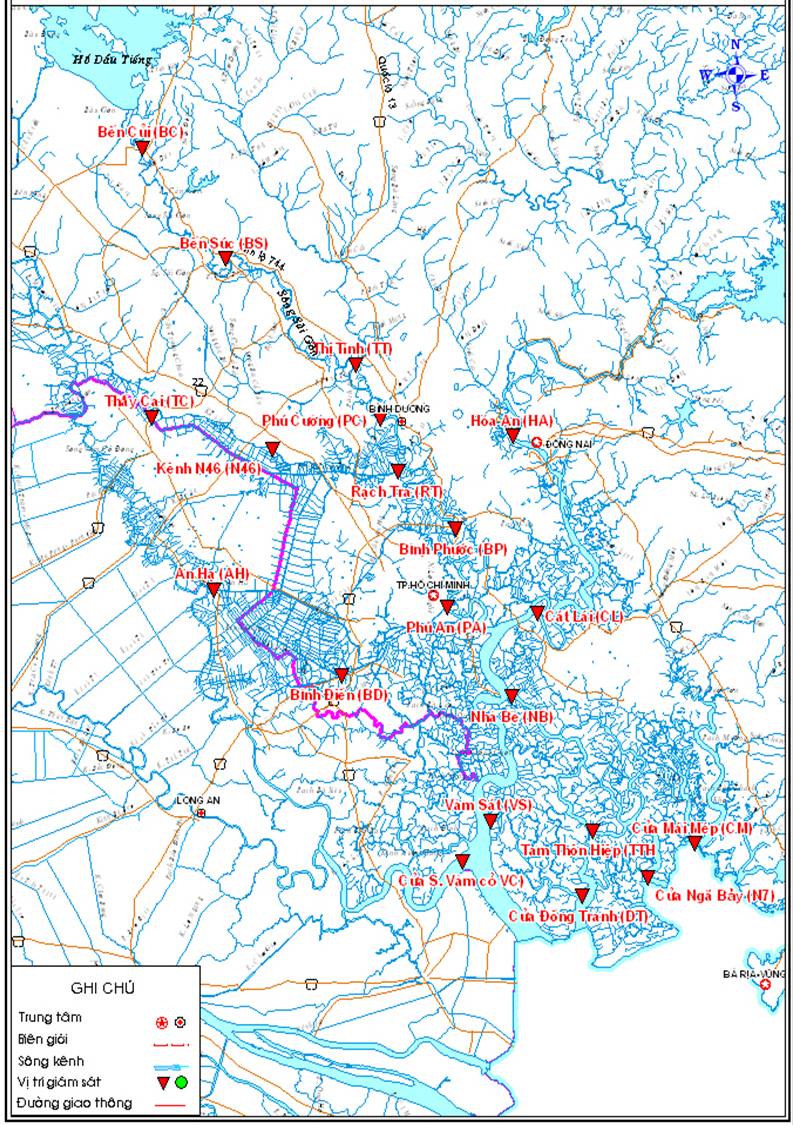 Bản đồ mạng lưới quan trắc lưu vực sông Đồng Nai – Sài Gòn (Chi cục Bảo vệ Môi trường, Sở Tài Nguyên và Môi trường TP HCM)