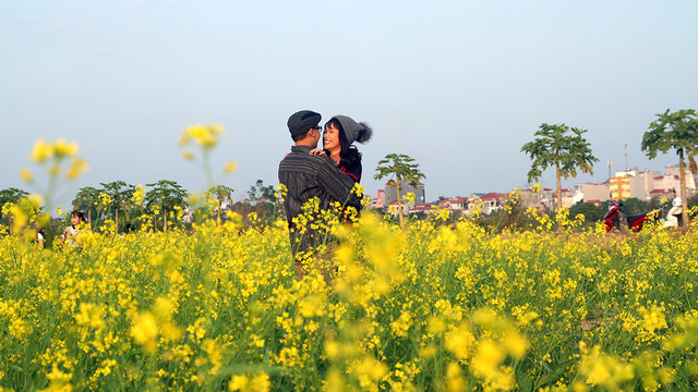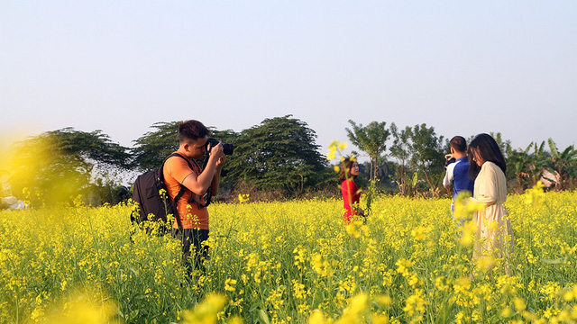 Young people in Hanoi have been flocking to gardens on the outskirts of the city to witness the beauty of blooming canola flowers.