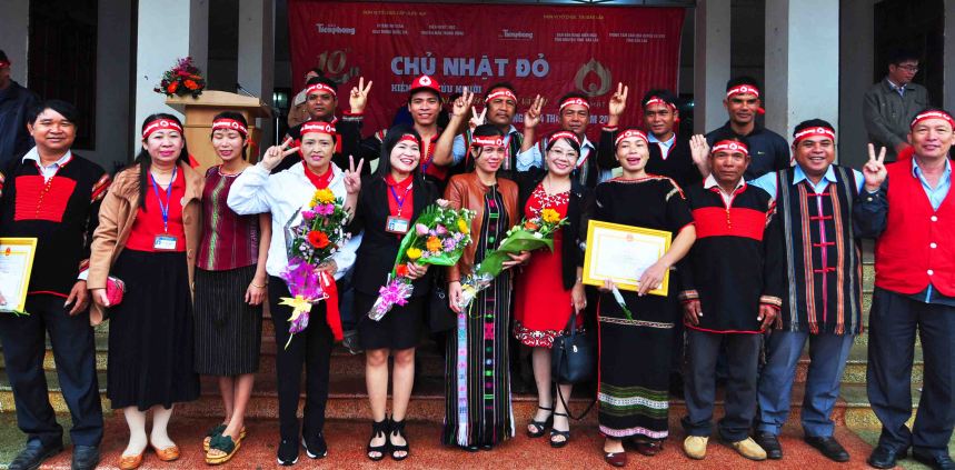 Dự lễ phát động Chủ Nhật Đỏ (CNĐ) và tiến hành khen thưởng cho các cá nhân đơn vị xuất sắc về hiến máu tình nguyện (HMTN) đầu buổi sáng ngày 24/1 vừa xong, 4 cán bộ Huyện ủy đăng ký hiến máu trước để còn về cơ quan làm việc. Phóng viên hỏi ông Trần Chí Thông- Phó ban Tuyên giáo huyện ủy đã HMTN bao nhiêu lần? Ông cười bảo: Tôi hiến là bình thường, không có gì đáng kể. Đáng mừng, khi được thấy công nhân viên chức, và đồng bào các dân tộc HMTN tích cực đến thế!