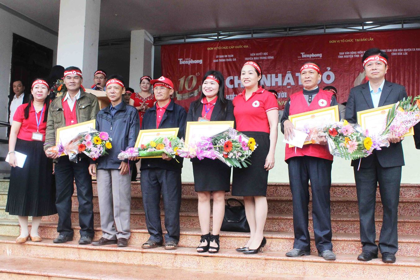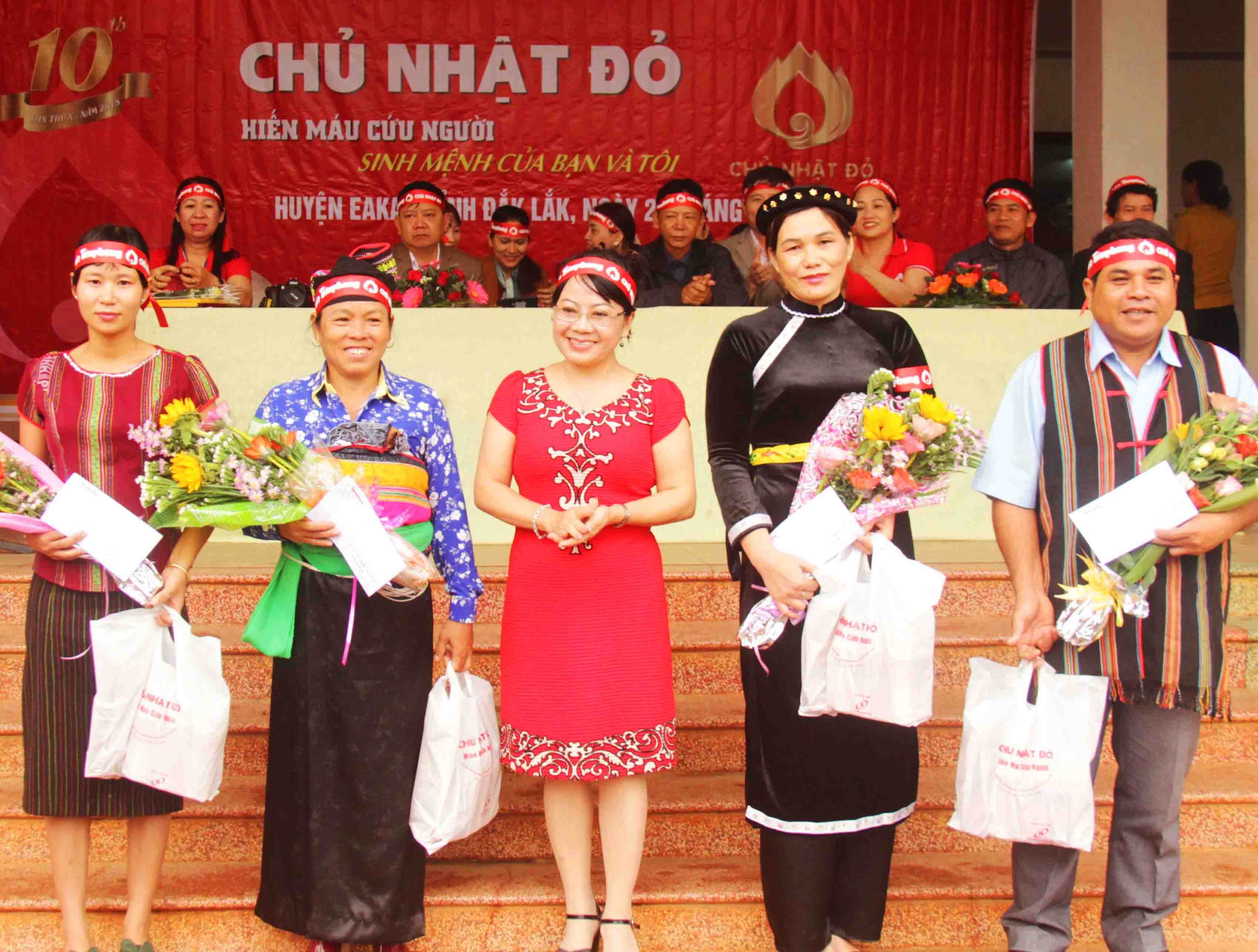 Ngoài 6 tập thể, 10 cá nhân có thành tích xuất sắc trong phong trào HMTN được BTC CNĐ tặng bằng khen lần này, Ea Kar còn có 4 tình nguyện viên được nhận giải thưởng vì đi đầu trong việc vận động đồng bào các dân tộc cùng tham gia hiến máu. Đó là chị Lương Thị Nhã dân tộc Mường ở thôn 9 xã Ea Pal, đã hiến máu 3 lần; Cô giáo Hoàng Thị Hằng dân tộc Tày ở trường Mầm non Cư Ea Lang đã hiến máu 3 lần; và 2 TNV người dân tộc Ê Đê là chị H’Ly Niê ở buôn Ea Ga xã Ea Kmut đã hiến 4 lần, và anh Y Tơng Ksơr ở xã Cư Ni đã hiến 5 lần.