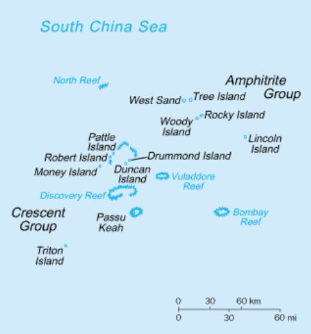 | Bản đồ 1 : Quần đảo Hoàng Sa.Perry-Castañeda Library Map Collection, http://www.lib.utexas.edu/maps/ |