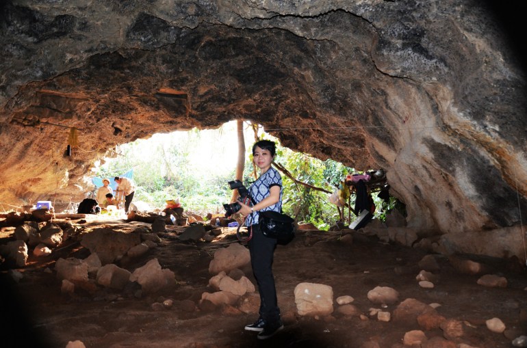 Trầy trật nối gót người dẫn đường vẹt cây mở lối trên nền đá basalt bọt lổm nhổm, tới cuối chặng đường thăm thẳm xuyên rừng, nỗi nhọc nhằn như tan biến khi chúng tôi đặt chân xuống lòng động mát lạnh, tận mắt chứng kiến niềm vui của các nhà khảo cổ tâm huyết trước những di vật mới phát hiện, đặc biệt quý giá.