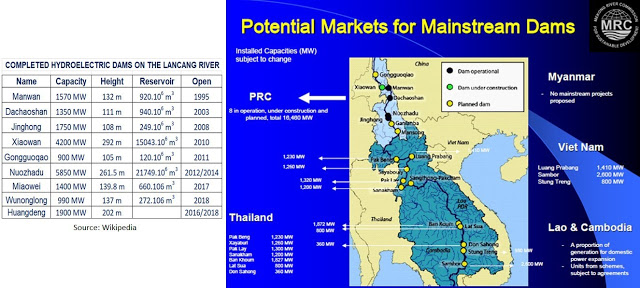 11 dự án thủy điện xây trên dòng chính sông Mekong trong hạ lưu vực (4 TQ, 4 Thái Lan, 2 Việt Nam và 1 Mã Lai), và khoảng ba mươi trên các sông nhánh được giới thiệu vào những năm đầu của thập niên 2000 7. Hình 2 và 2b.