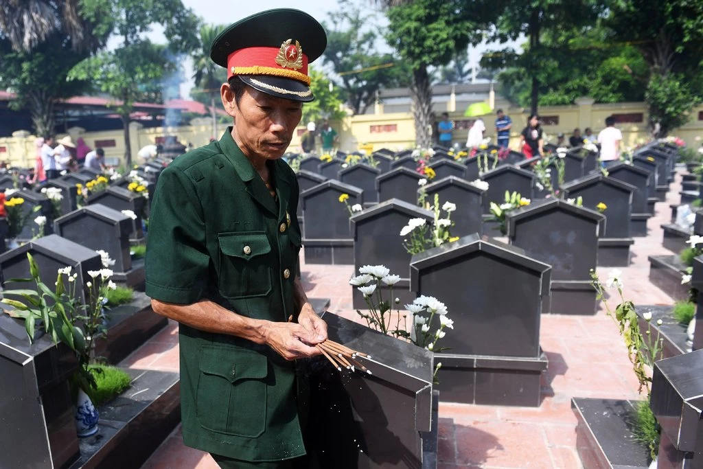 A war veteran places incense on graves in Hanoi on the national Day for Martyrs and Wounded Soldiers. Credit Hoang Dinh Nam / Agence France-Presse — Getty Images