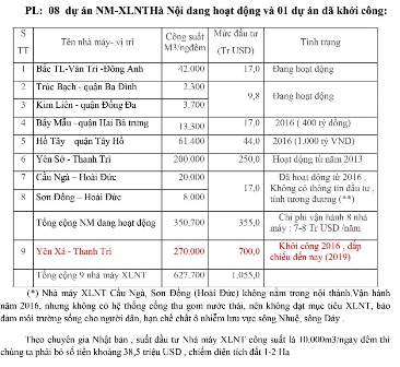Dự án XLNT Hà Nội do tư vấn nước ngoài đề xuất. Hiện đã có 8 nhà máy XLNT (tổng đầu tư khoảng 355 triệu USD) đang vận hành. Nếu kể thêm nhà máy XLNT Yên Xá (Thanh Trì), trị giá 700 triệu USD (khởi công từ 2016 hiện đang đắp chiếu), tổng đầu tư Dự án thoát nước và XLNT Hà Nội là 1,6 tỷ USD, chi phí vận hành gần 10 triệu USD/năm. Đầu tư lớn như vậy, nhưng hầu hết sông hồ Hà Nội vẫn ô nhiễm; Nhiều nơi vẫn úng ngập mỗi khi mưa to.