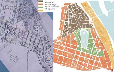 Năm 1889, Hà Nội lập bản đồ thoát nước, trong đó phân ra thành hai khu vực: khu phố cổ – vốn tập trung người Việt sinh sống, và khu phố Pháp (mới) bao gồm cả khu Hồ Hoàn Kiếm – dành cho người Pháp. Toàn thành phố có một hệ thống thoát nước chung đổ ra sông hồ, nhưng việc thoát nước từ trong nhà đổ vào hệ thống chung này theo quy định nghiêm ngặt . Khu phố cổ không có cống ngầm thoát nước thải sinh hoạt.