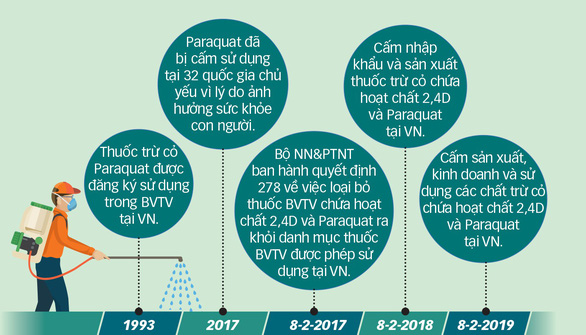 Như vậy, theo đúng lộ trình, tới 8-2-2019, việc kinh doanh loại thuốc trừ cỏ có hoạt chất 2,4D và Paraquat đã bị cấm.