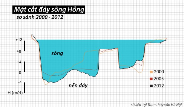 “Vấn đề cốt lõi của sông Hồng hiện nay là đáy lòng dẫn bị hạ thấp, dẫn đến mực nước cũng bị hạ thấp rất nghiêm trọng” – GS.TS Trần Đình Hòa, Phó giám đốc Viện Khoa học Thủy lợi Việt Nam khẳng định.