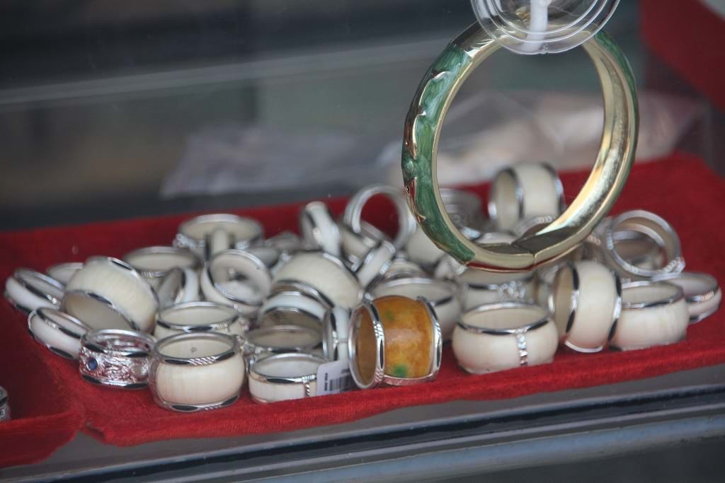 Sản phẩm chế tác từ ngà voi ngang nhiên được bày bán tại các cửa hàng. Ảnh: TL