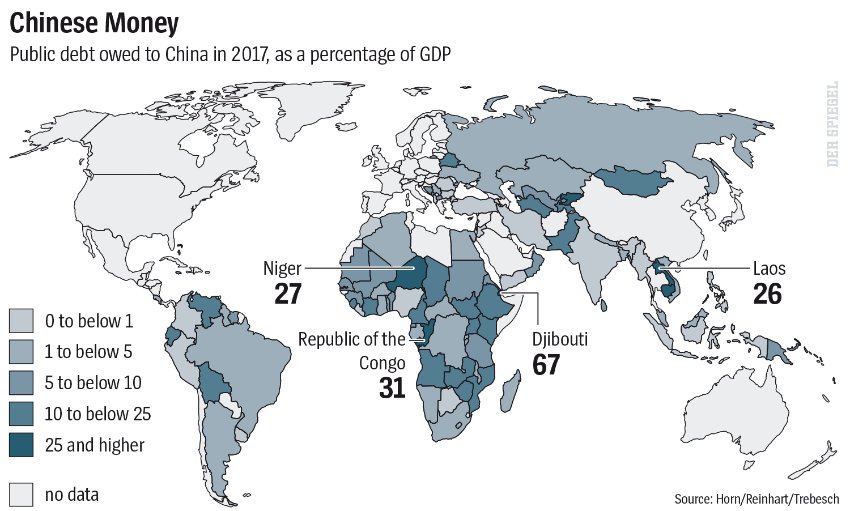Whereas official Chinese government statistics often only list small loan totals, the real numbers are far higher, as the new study shows. The small country of Djibouti, for example, is carrying a Chinese debt load equivalent to 70 percent of its annual economic output. In Congo, it is 30 percent and in Kenya, 15 percent. It is vastly more than the governments owe to Western countries. Colonialism, made in China.
