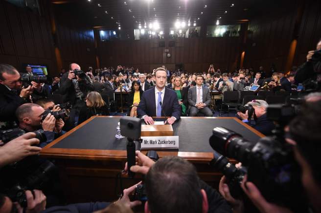 Mark Zuckerberg phải ra điều trần trước một ủy ban thuộc Quốc hội Mỹ vào tháng 4/2018 do bê bối thu thập dữ liệu người dùng (Nguồn: Getty)