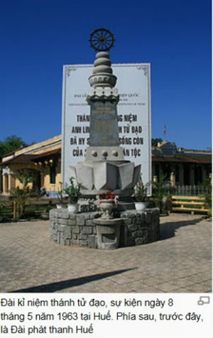 Nhưng may mắn thay cho lịch sử 63, cũng là lịch sử của Huế, cũng là lịch sử của đất nước, chúng ta có một đài thánh tử đạo, mà thành phố Huế tôn vinh, để kỷ niệm cái chết linh thiêng đã mở màn cho cuộc tranh đấu bất bạo động. Cái chết của bảy em bé không làm chấn động thế giới như cái chết của bồ tát Quảng Đức. Nhưng thế giới hãy đến đây, đứng trước Đài kỷ niệm đơn sơ này, và ngẫm nghĩ cho kỹ một hàng chữ không khắc trên Đài mà khắc trong lòng người, bất cứ người nào đứng trước Đài, bất cứ quốc gia nào, bất cứ thời đại nào, bất cứ văn minh nào: “Bạo lực nào cũng thất bại, Sự Thật và Từ Bi là bậc chiến thắng muôn đời “.